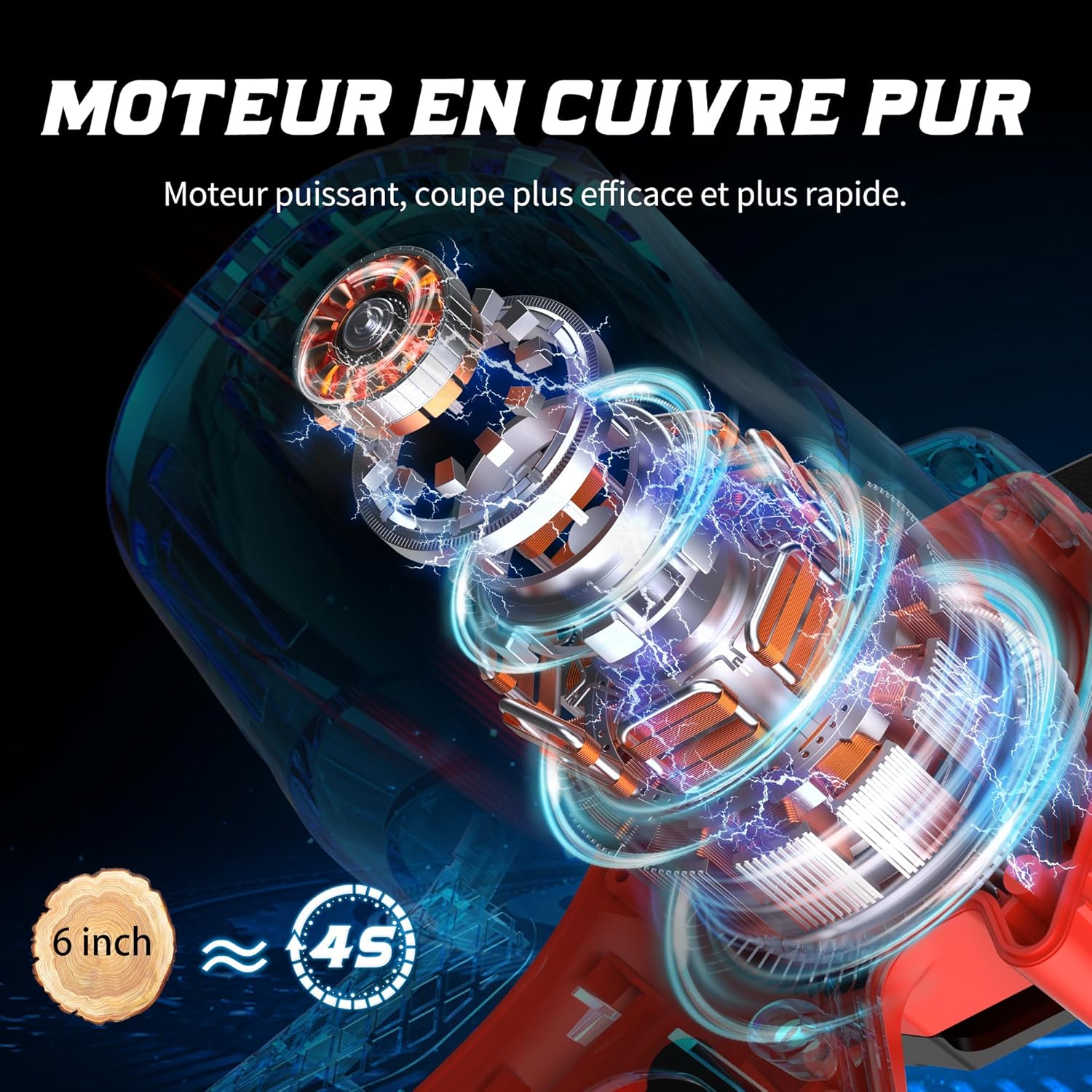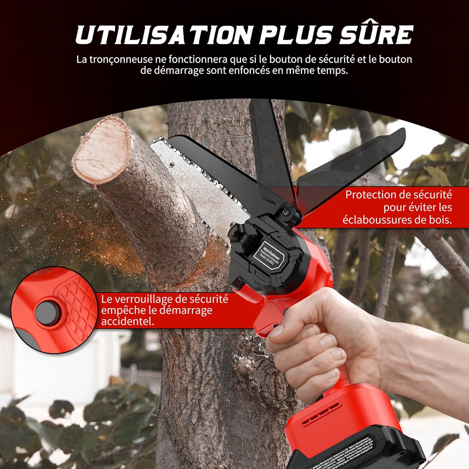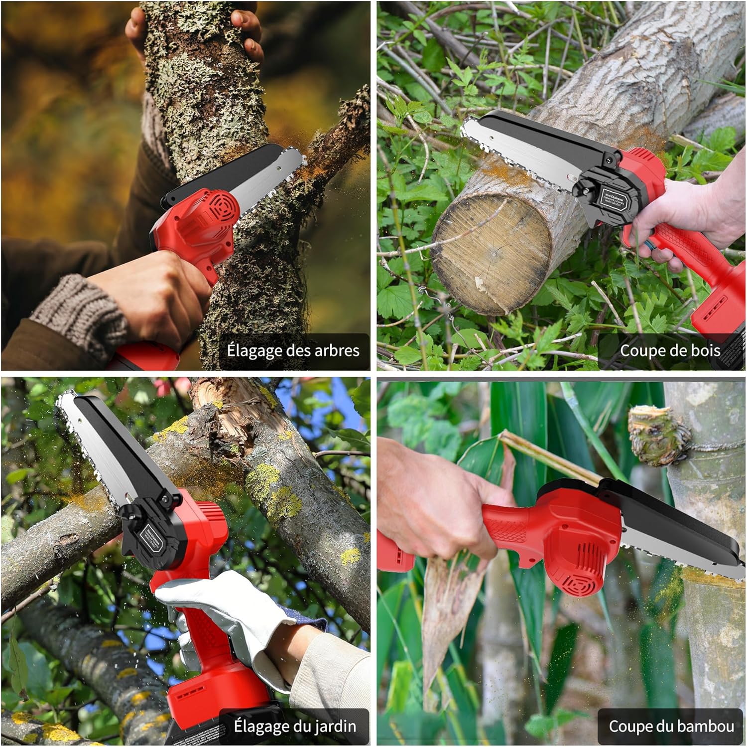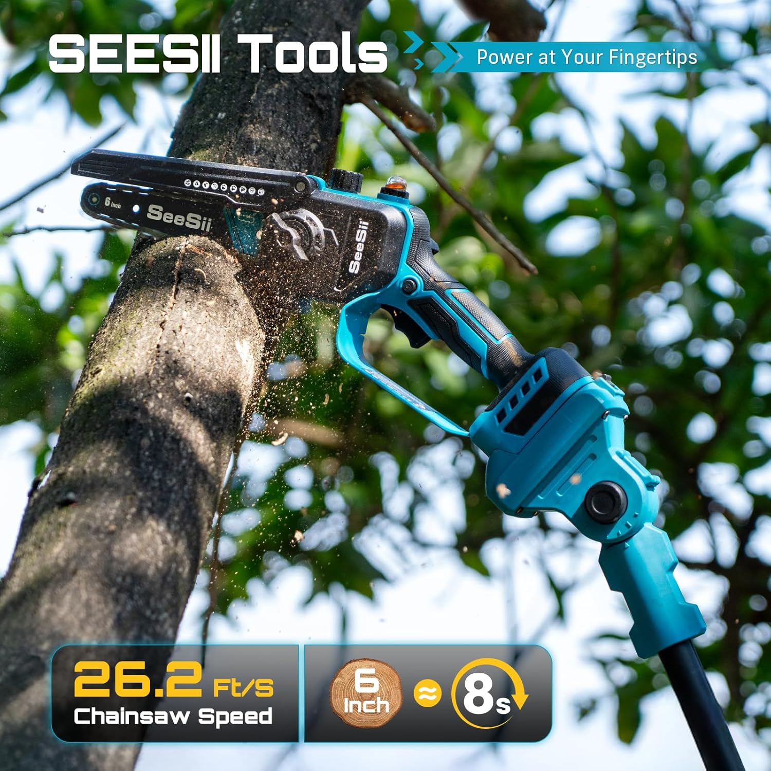 SEESII Mini Motosega a Batteria 8000mAh, 900W 6 Pollici Motosega Elettrica per Potatura con Pompetta Olio e Catena di Ricambio, Motosega da Potatura per il Taglio del Legno Giardini, 6C10SM