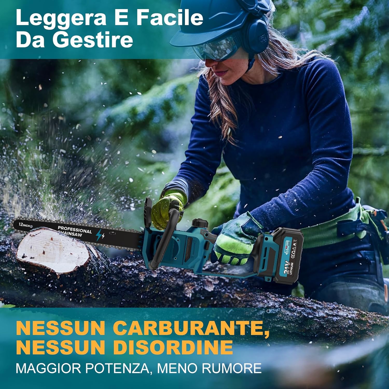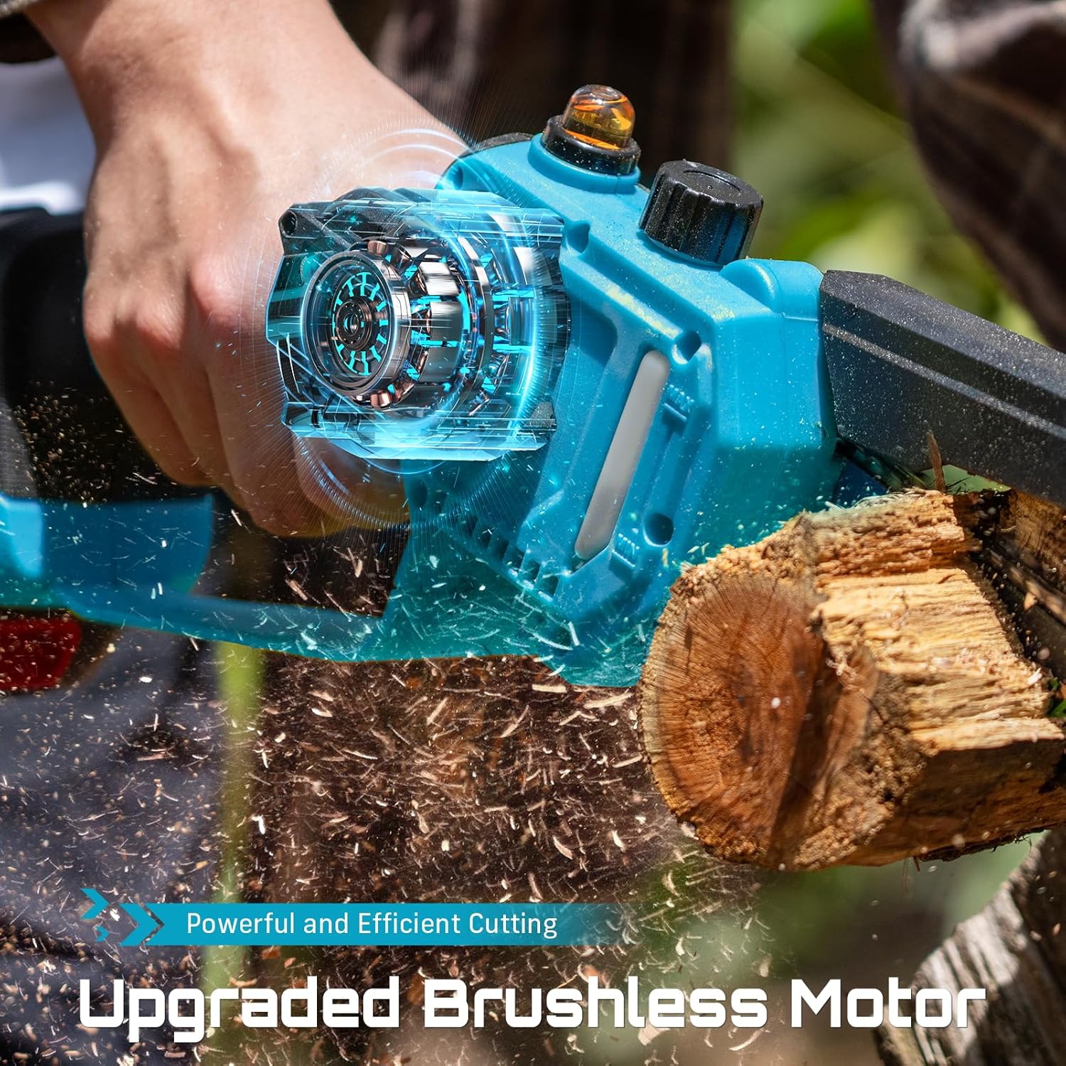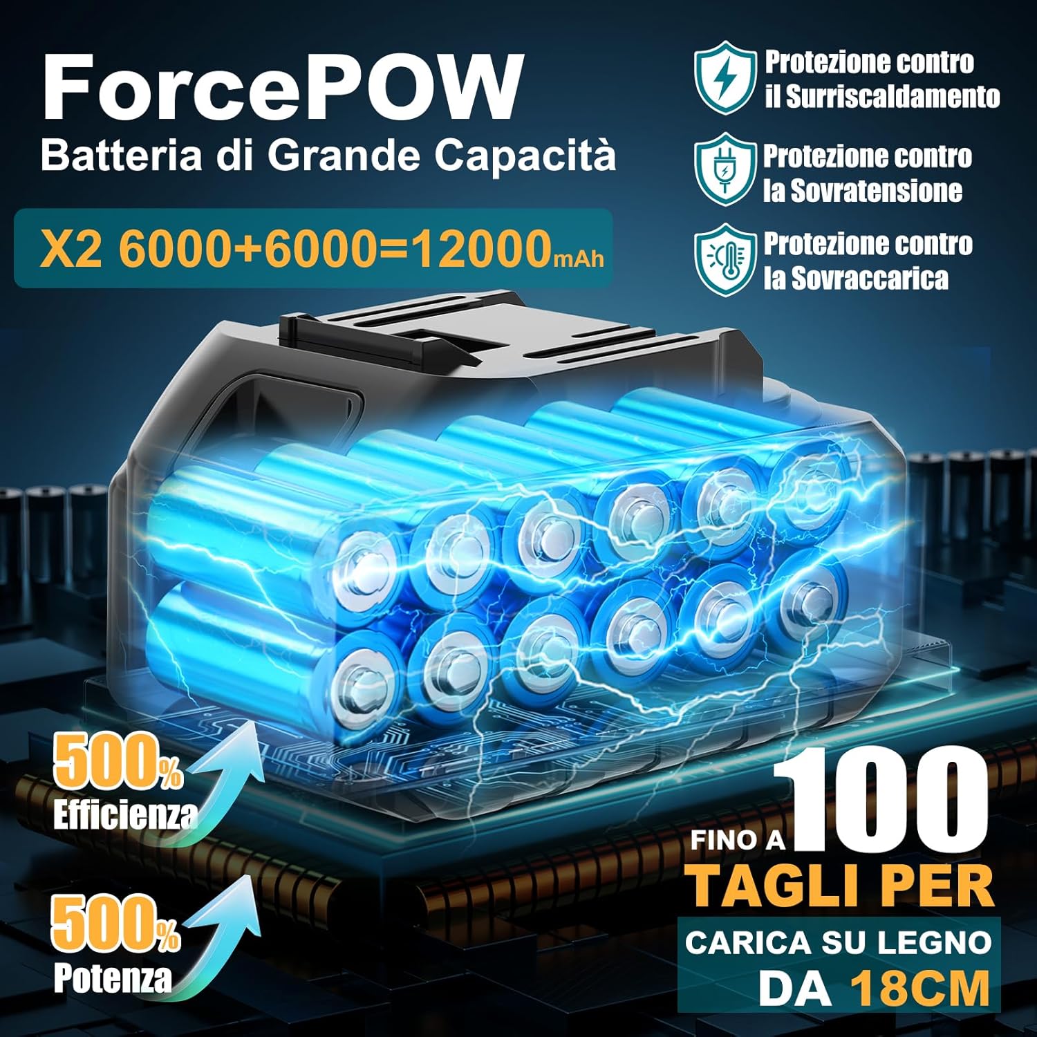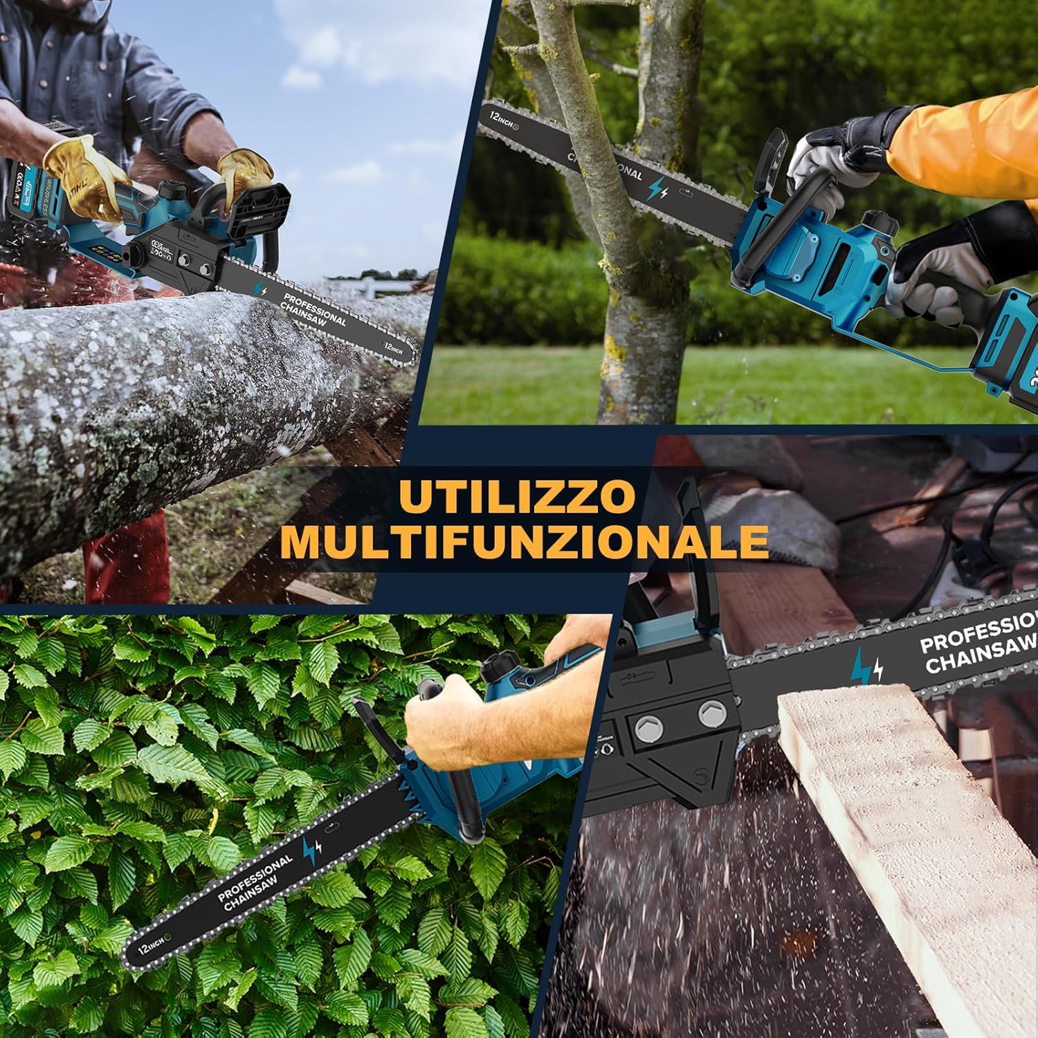 12 Pollici Motosega a Batteria, Motosega Elettrica Senza Fili 2x4000mAh, Potatore Senza Fili per Attrezzi da Giardino, Taglio del Legno, Fai da Te (1800W Brushless) - PowerCut X13
