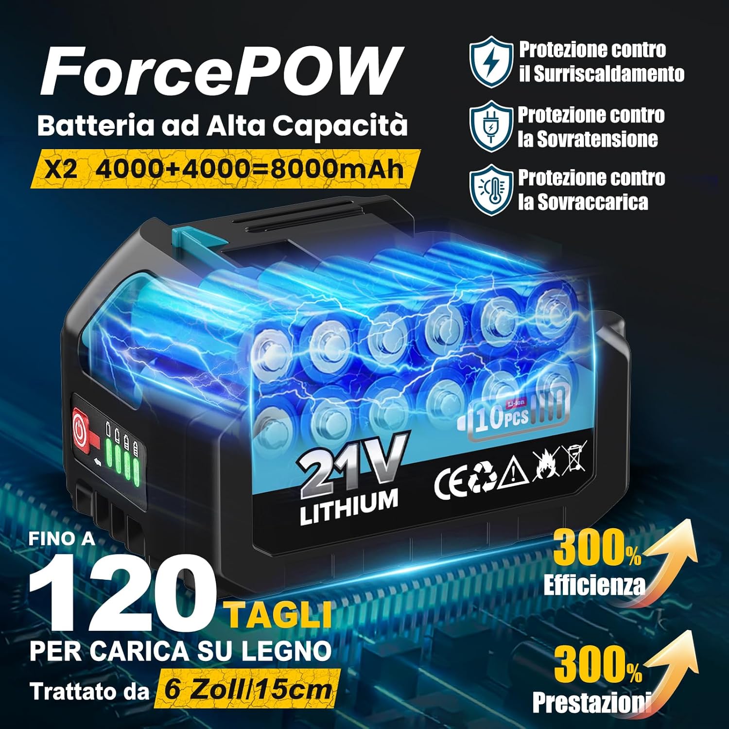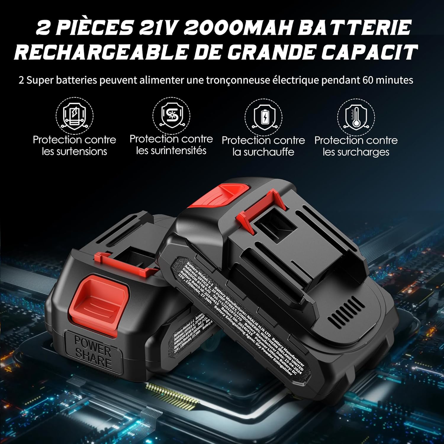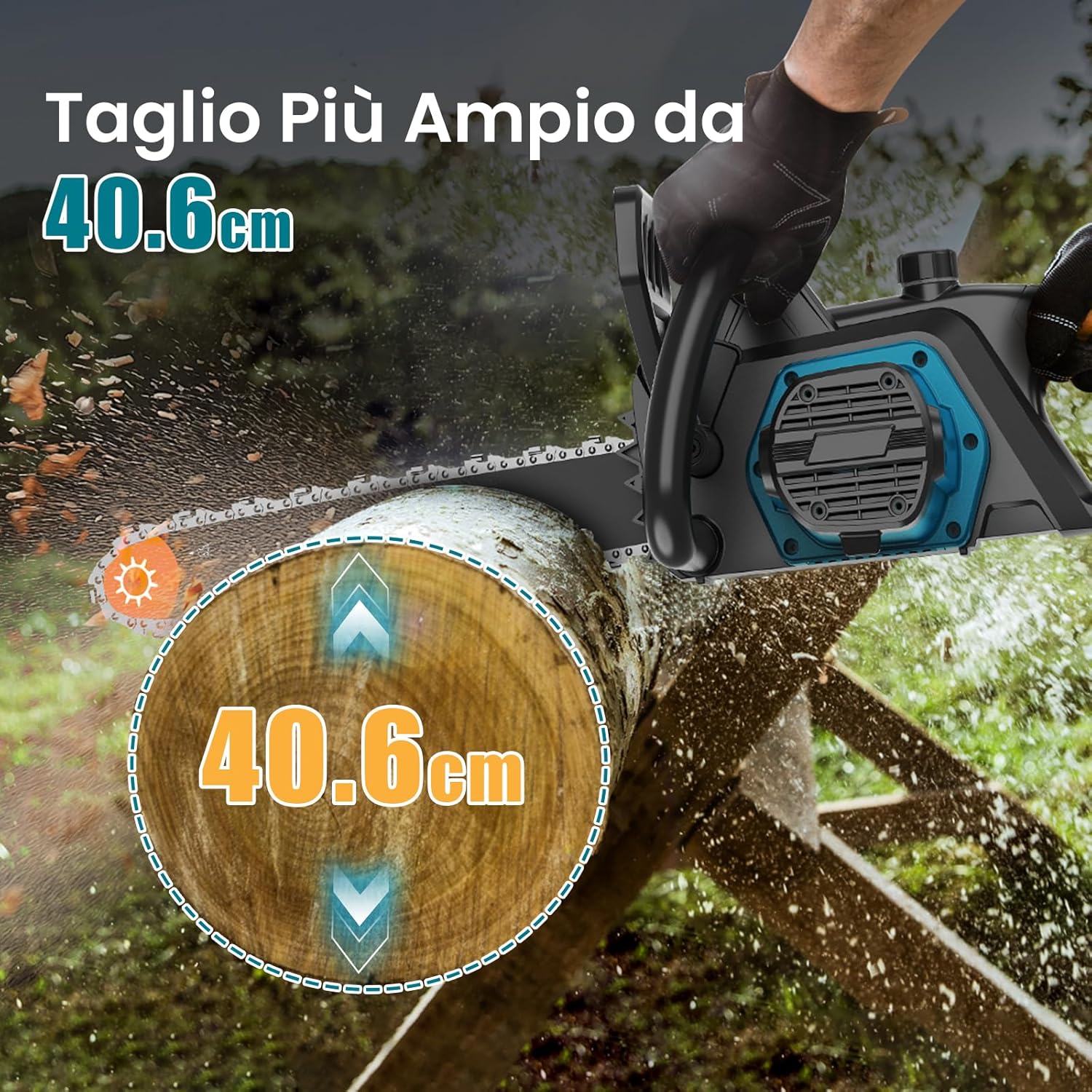 12 Pollici Motosega a Batteria, Motosega Elettrica Senza Fili 2x4000mAh, Potatore Senza Fili per Attrezzi da Giardino, Taglio del Legno, Fai da Te (1800W Brushless) - PowerCut X13