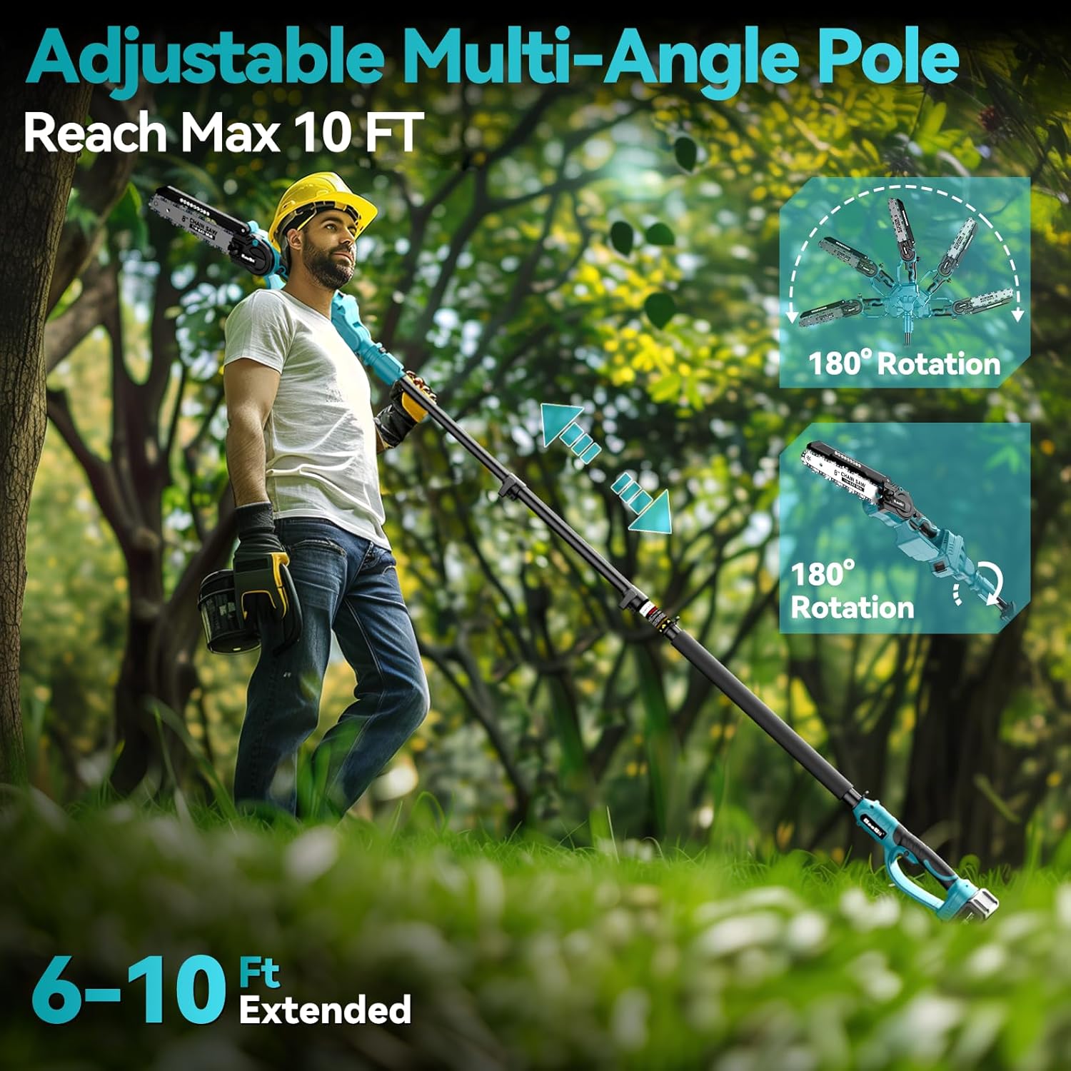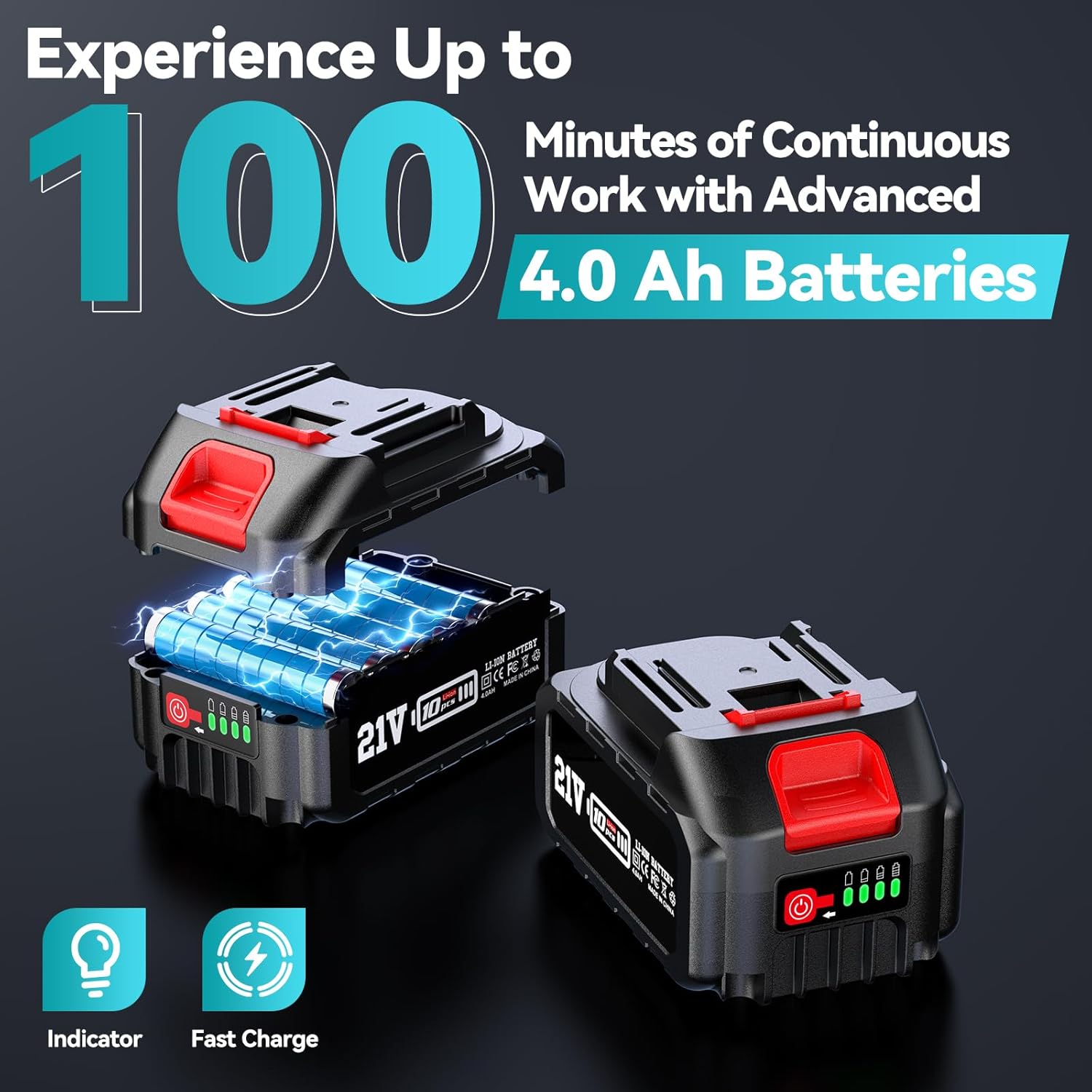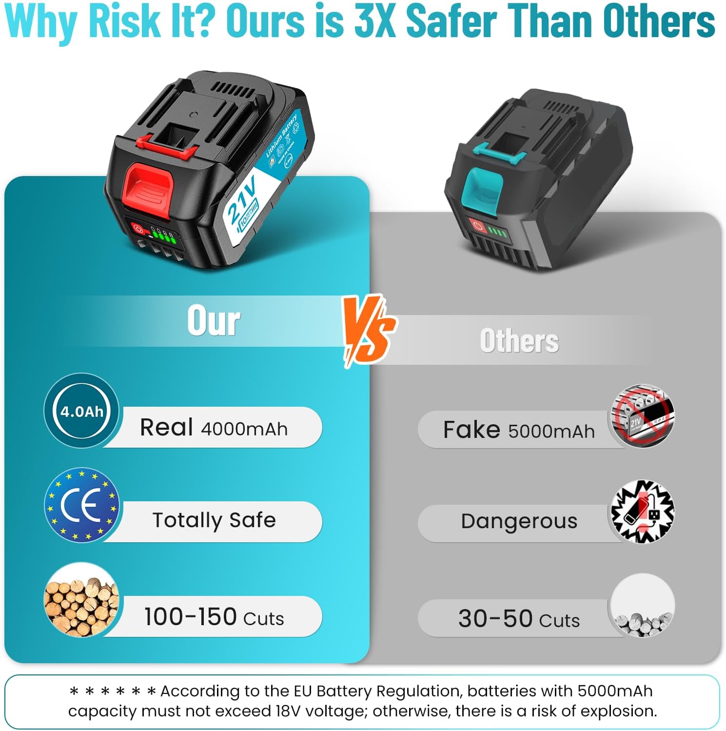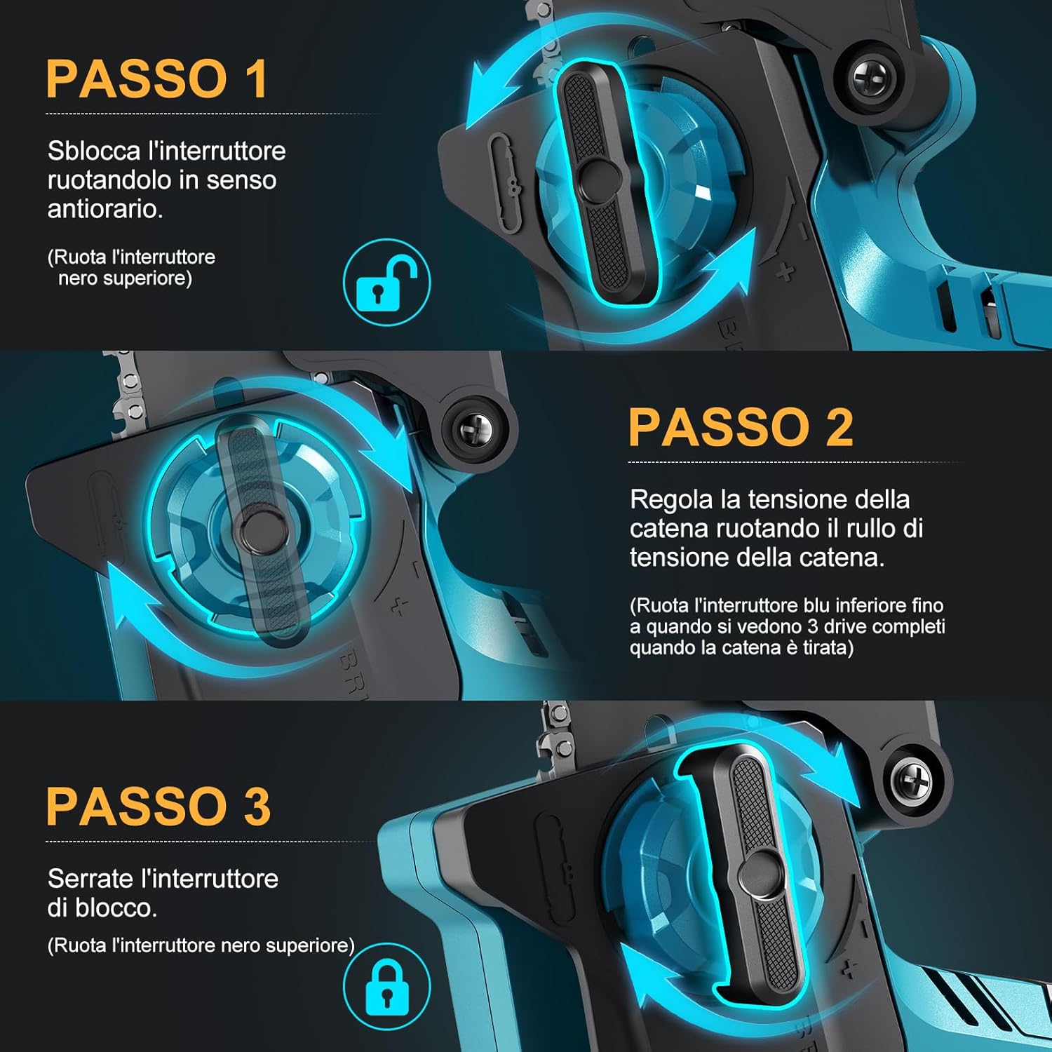 12 Pollici Motosega a Batteria, Motosega Elettrica Senza Fili 2x4000mAh, Potatore Senza Fili per Attrezzi da Giardino, Taglio del Legno, Fai da Te (1800W Brushless) - PowerCut X13
