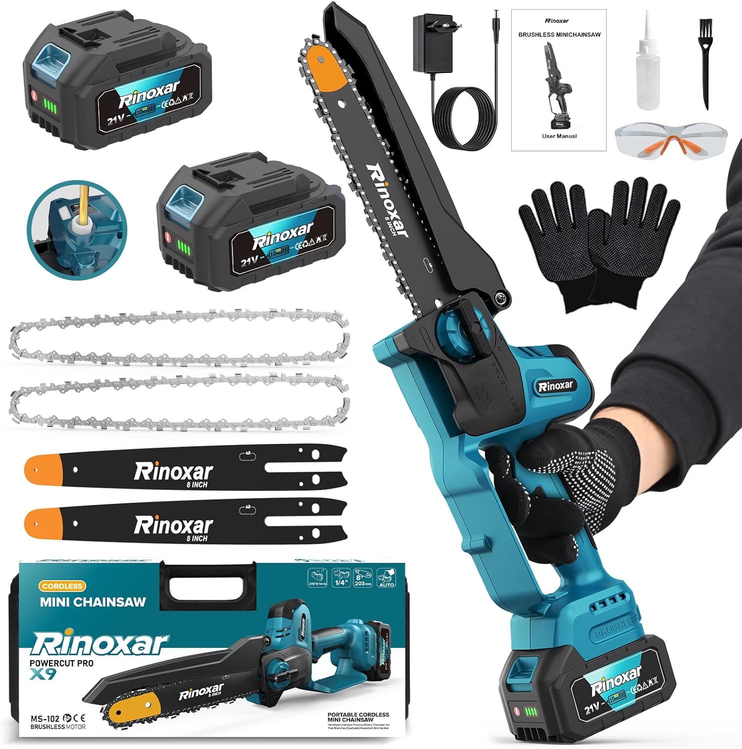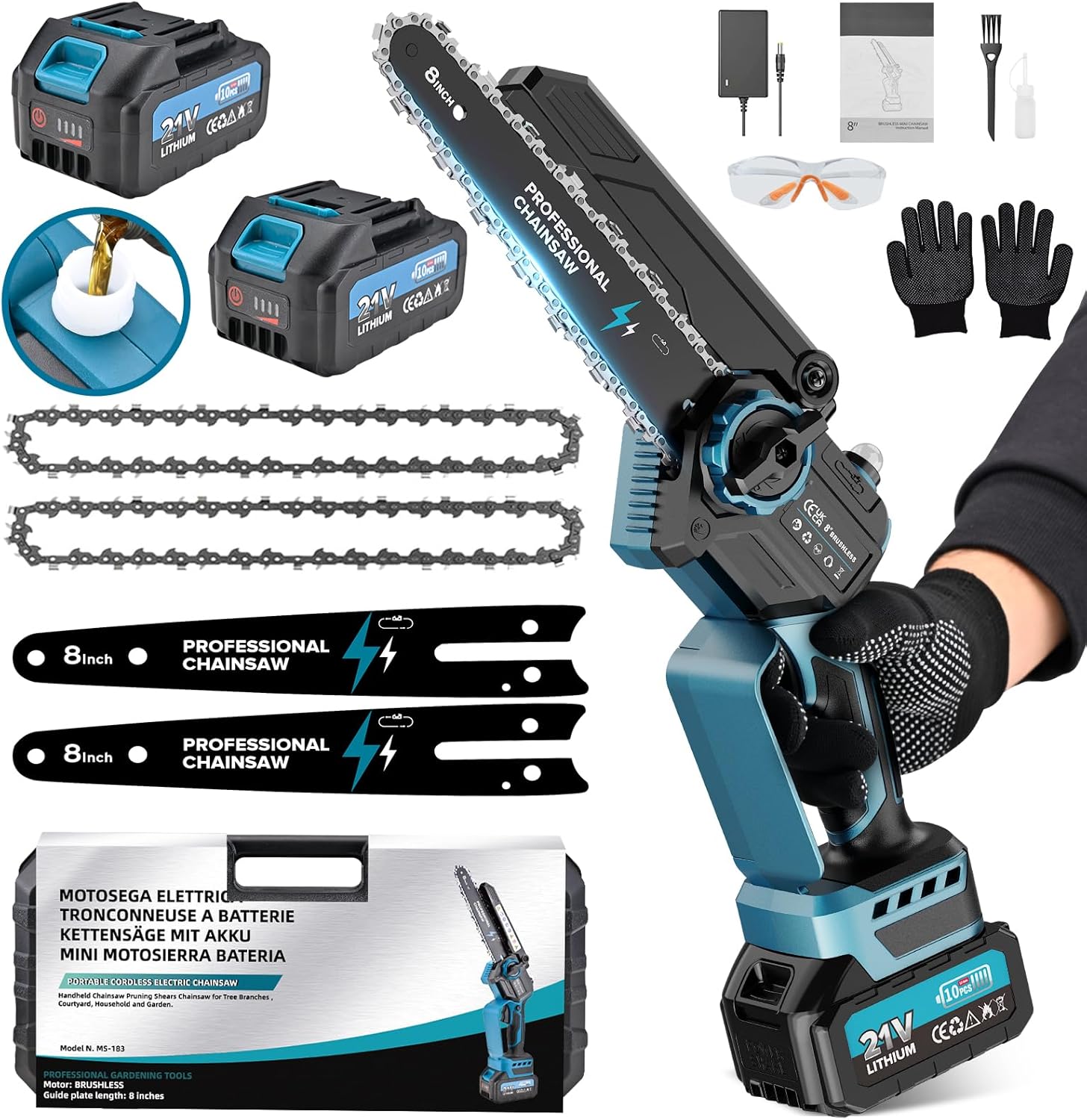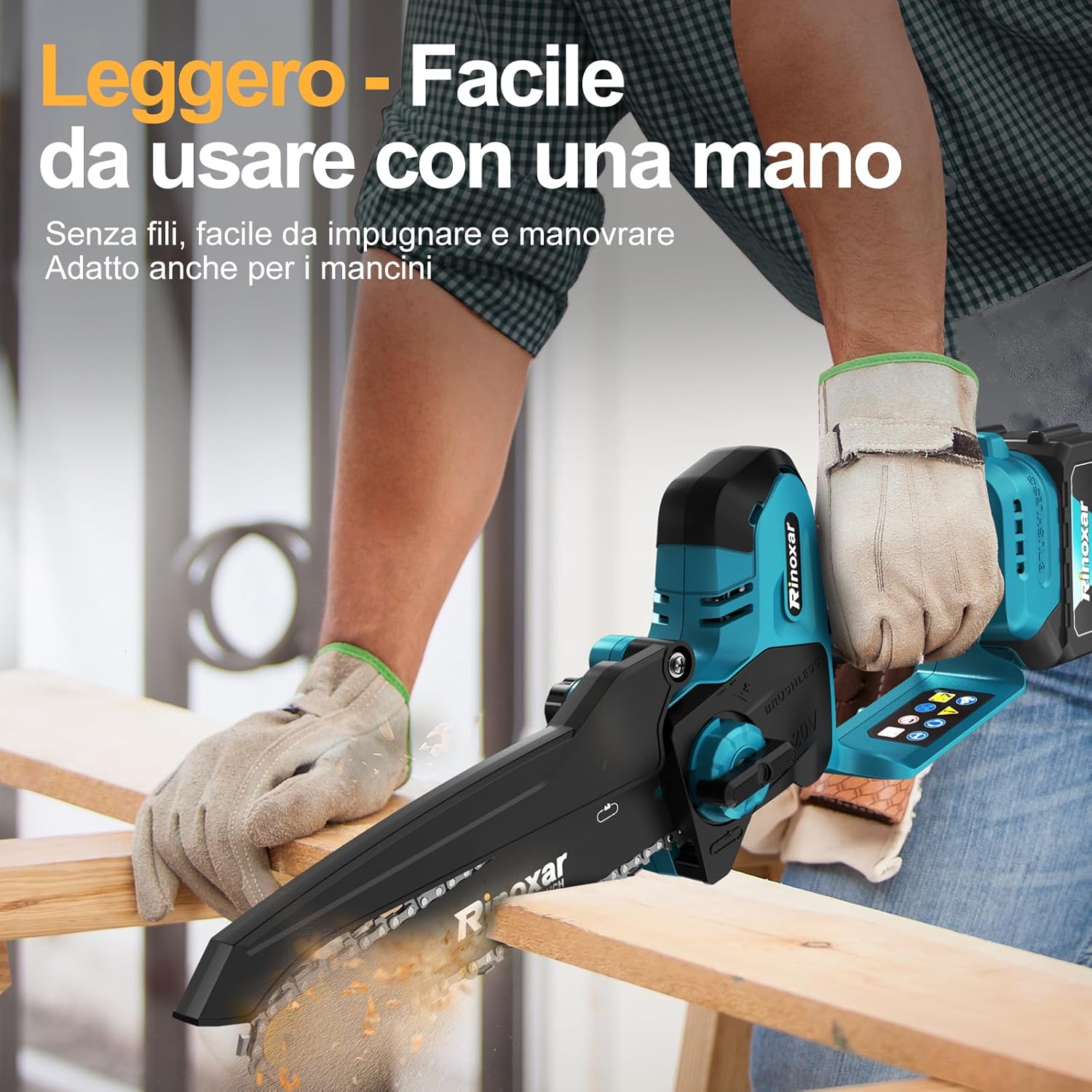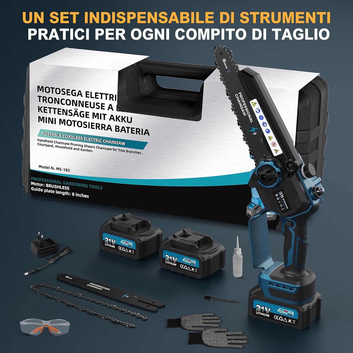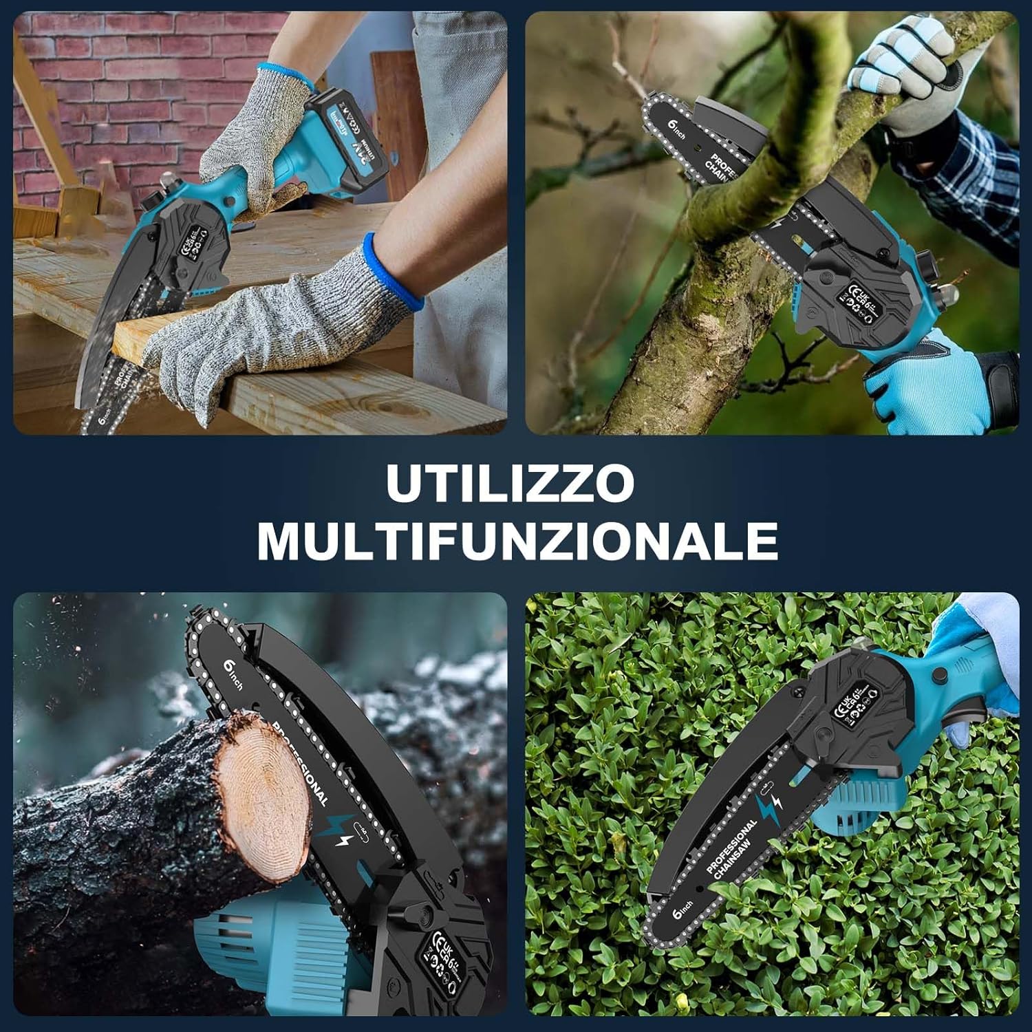 Mini Motosega Elettrica Sega Batteria - Motoseghe per Potatura Taglio Legno e Giardini Seghetto Elettrico con 800W Motori Brushed, 2 Potatore Batterie 6" Minisega Elettrosega Tagliarami Ginarelo