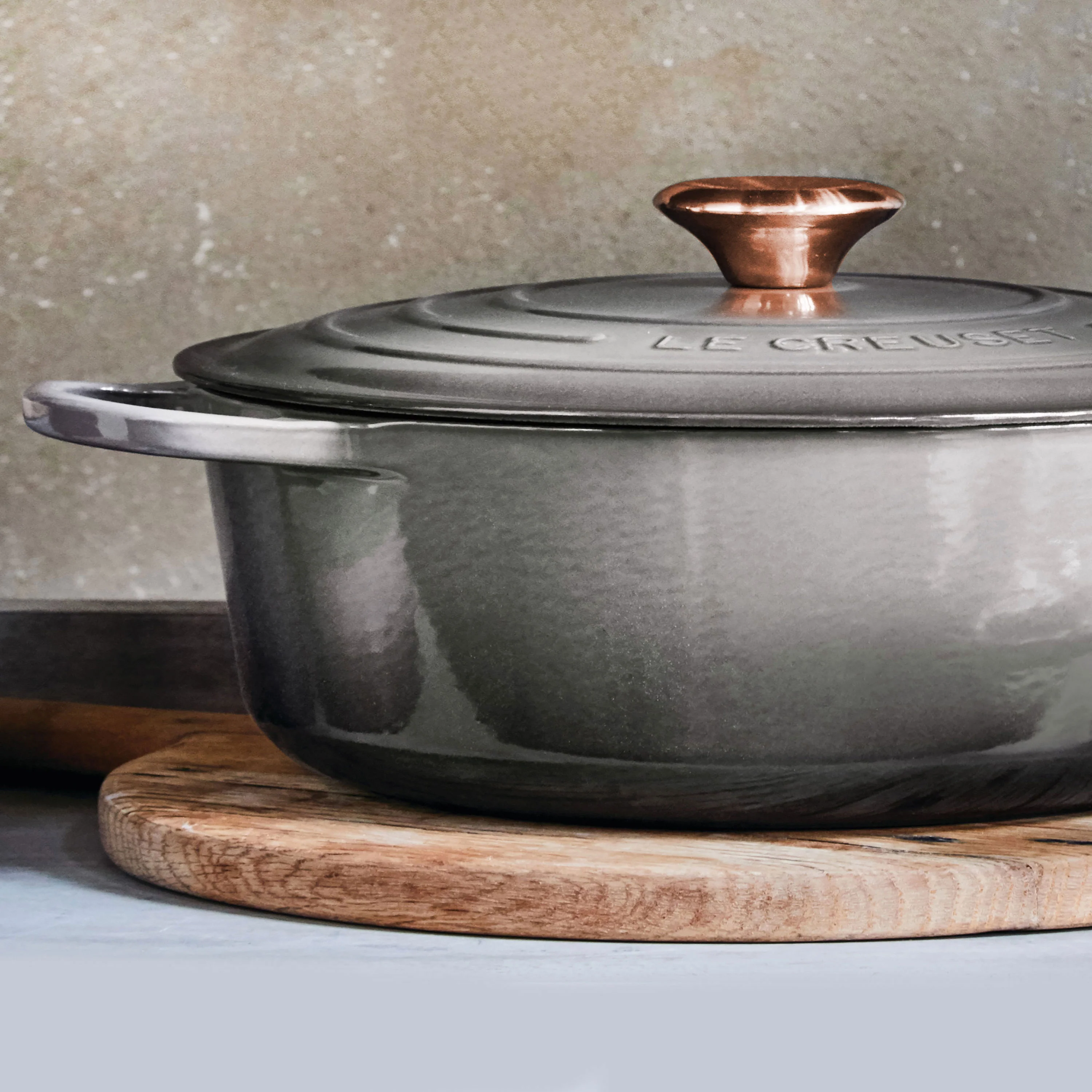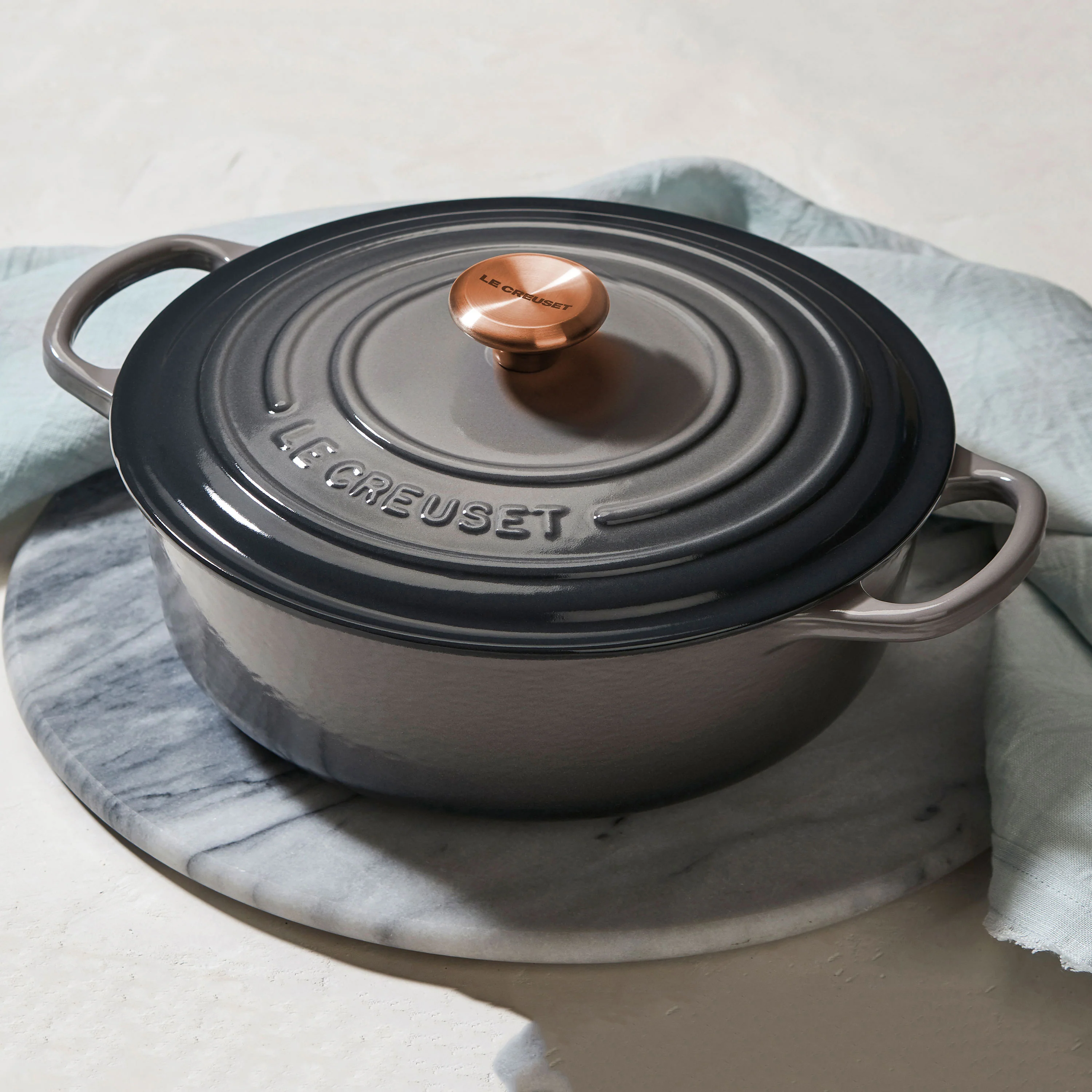 Le Creuset Signature – Forno Olandese Rotondo e Largo in Ghisa Smaltata da 6,75 qt, colore Oyster, con Pomello in Rame