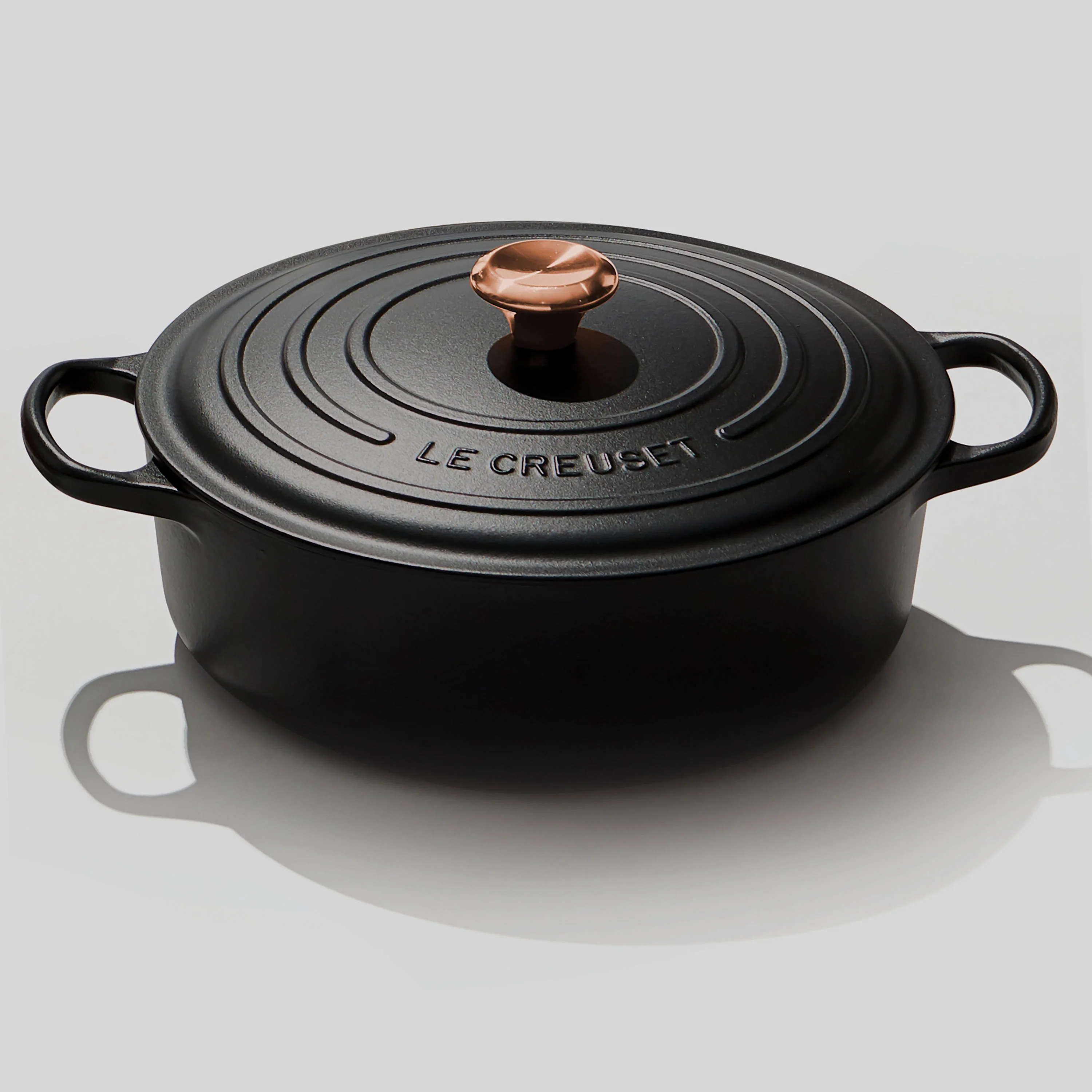 Le Creuset Signature – Forno Olandese Rotondo e Largo in Ghisa Smaltata da 6,75 qt, colore Licorice, con Pomello in Rame