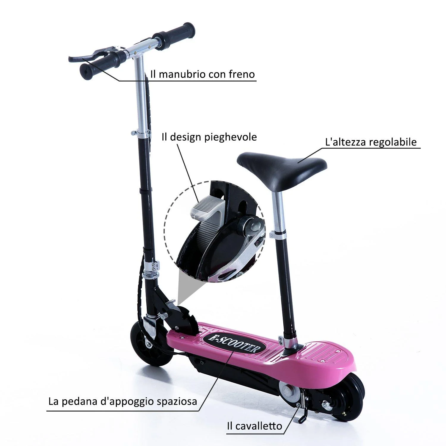 Monopattino Elettrico per Bambini 120W Pieghevole con Sella Rosa e Nero