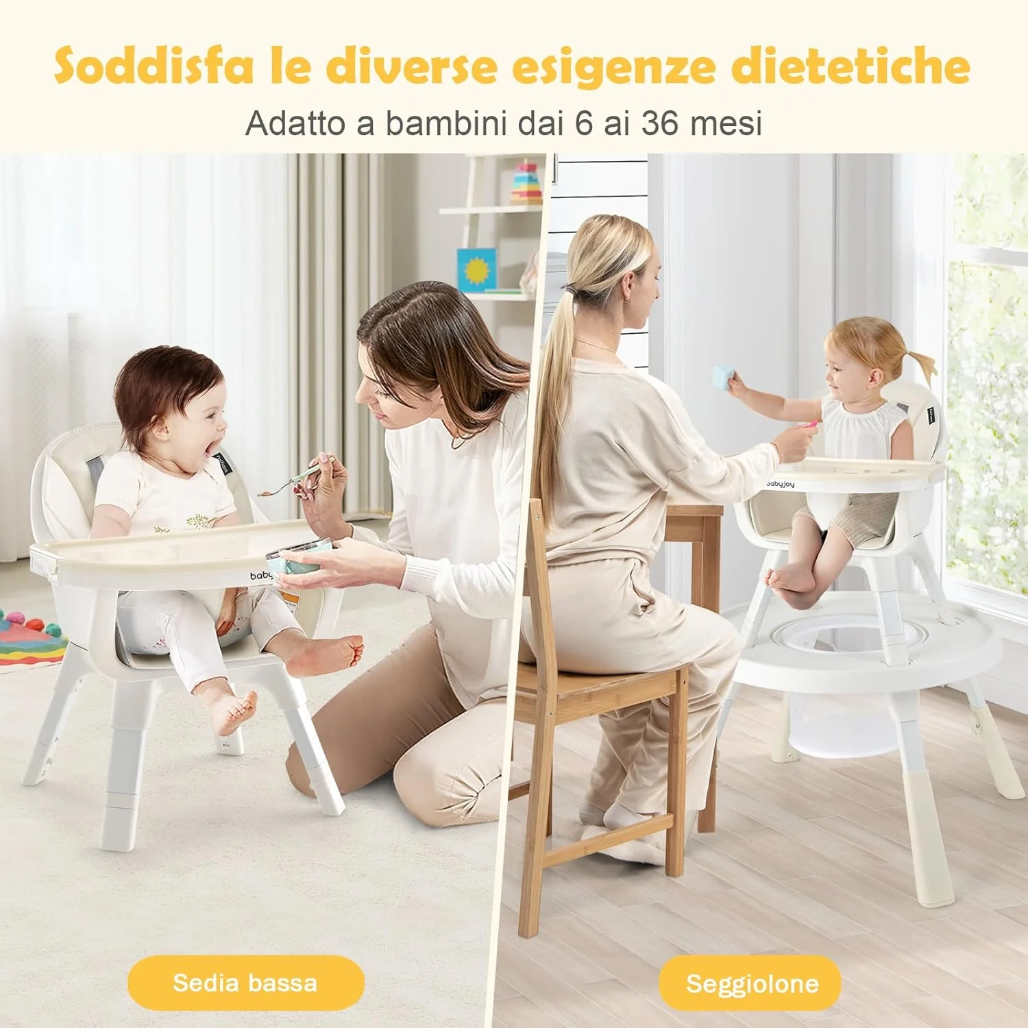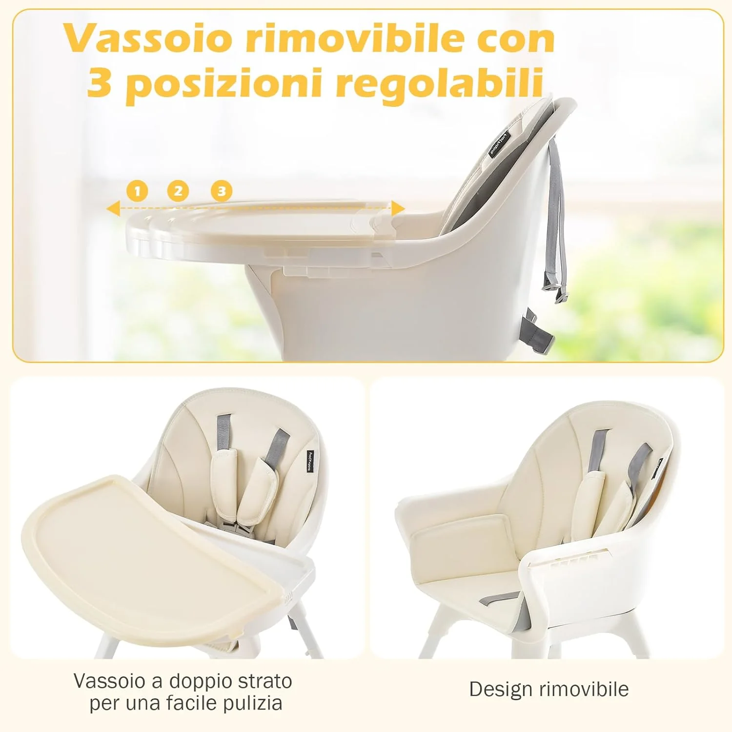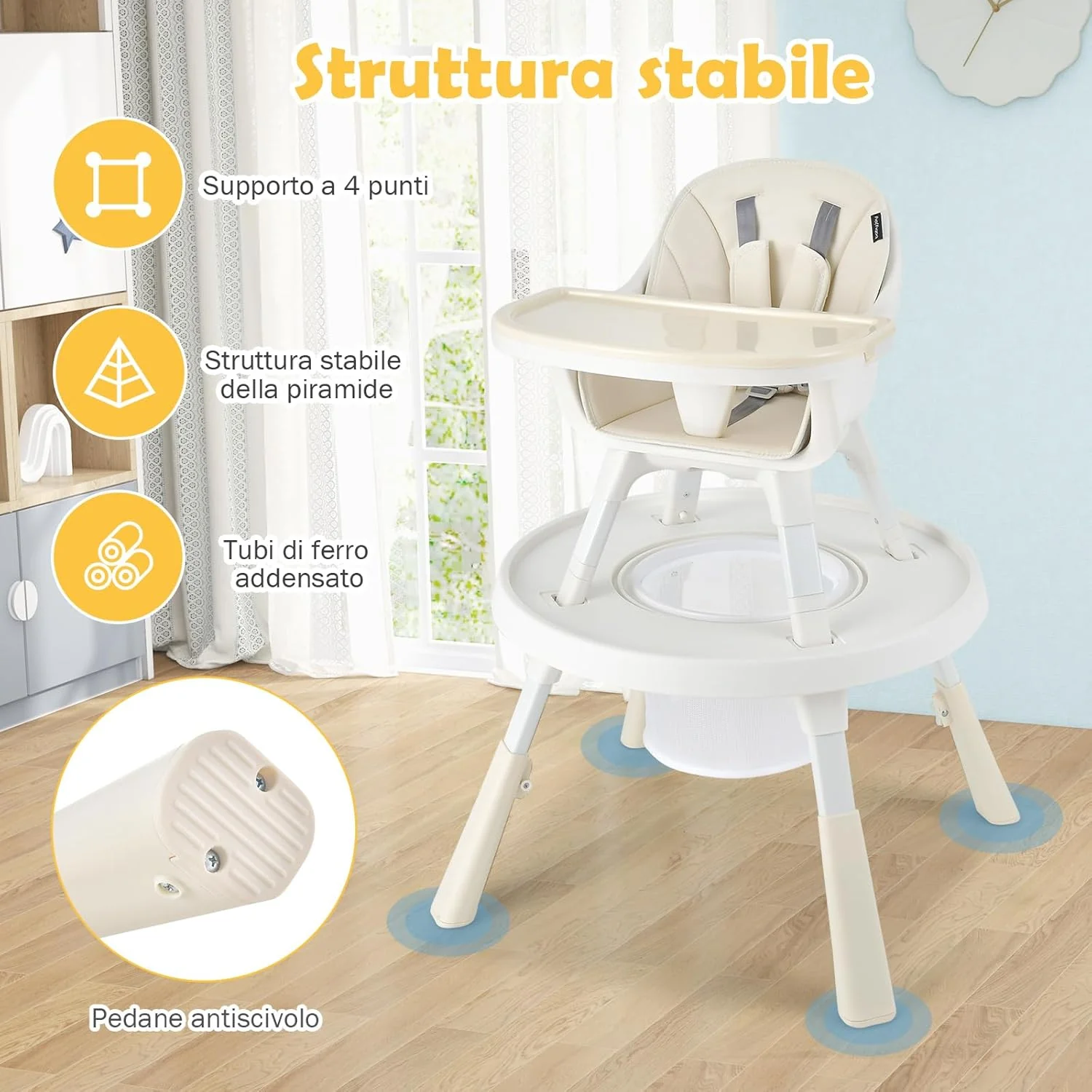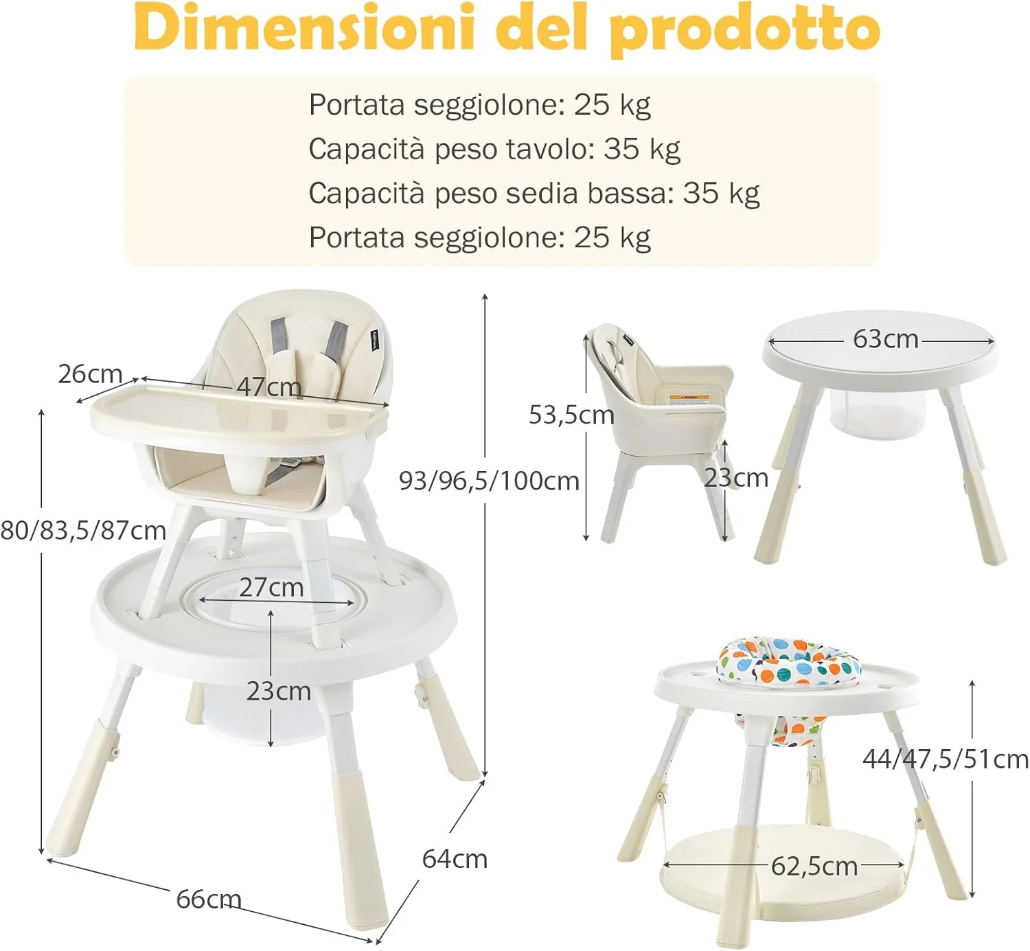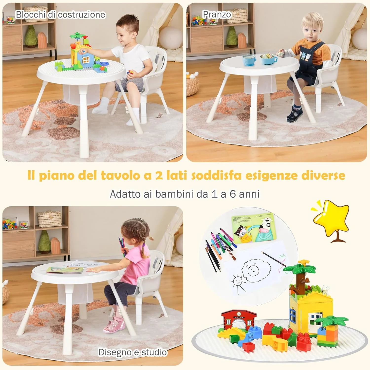 6 in 1 Seggiolone per Bambini, Seggiolone con Altezza Regolabile con Vassoio a 2 Livelli e Cesta, Centro Attività per Bambini, Set Tavolo e Sedia con Mattoncini per Bambini (beige)