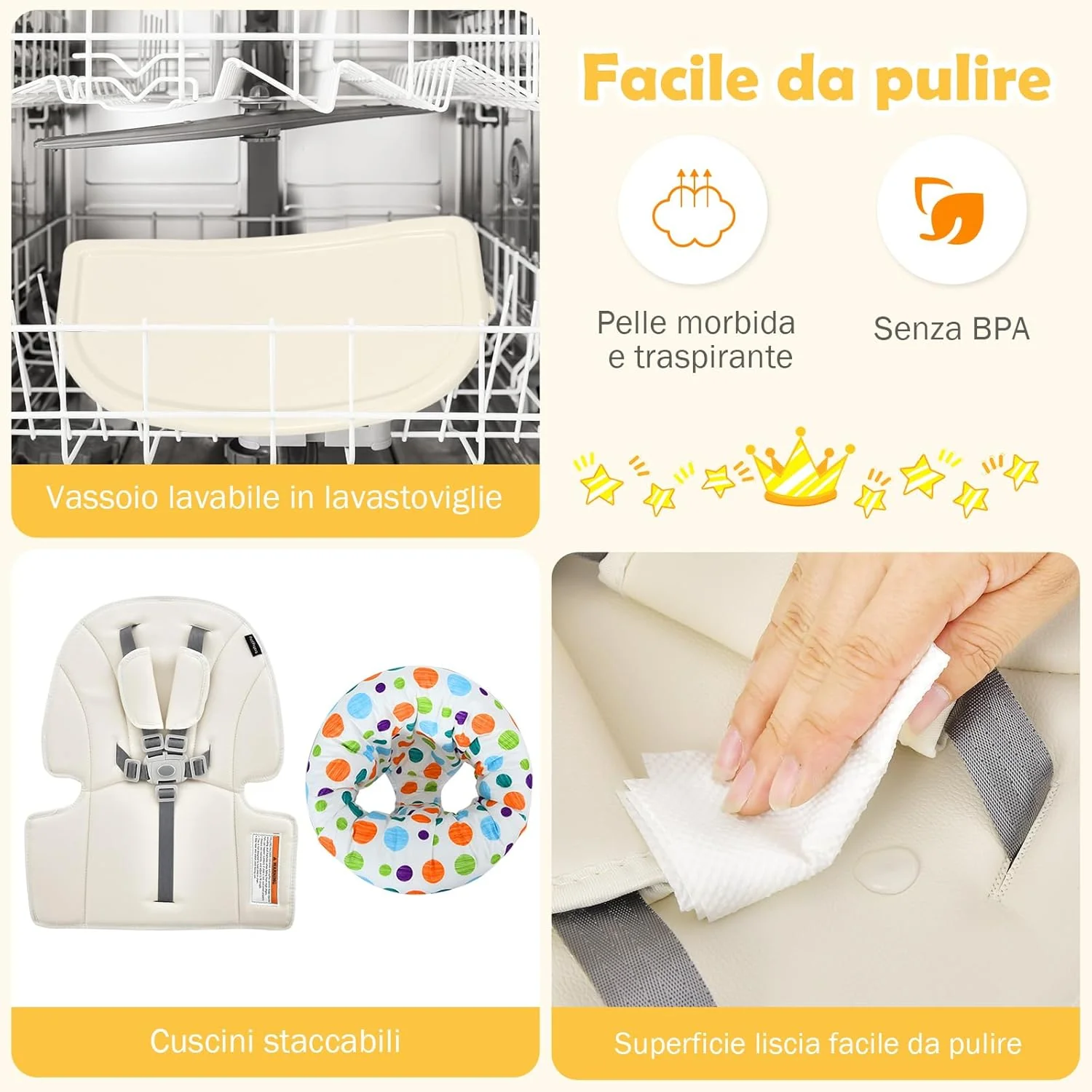 4-in-1 Seggiolone Portatile per Bambini, Seggiolone con Schienale per Alimentazione, con 7 Altezza del Sedile Regolabili, Ruote, Pieghevole