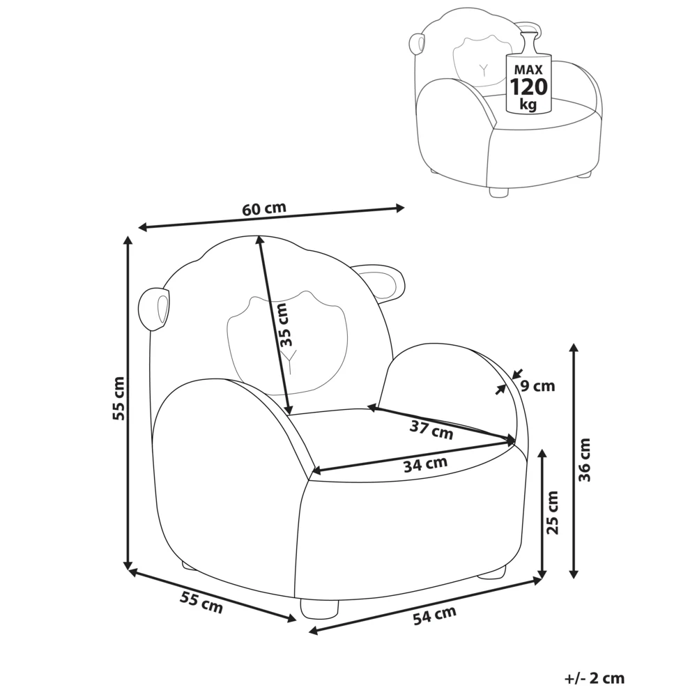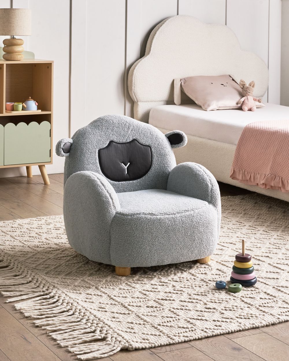 Poltrona per bambini Tessuto Grigio motivo pecora Tappezzeria Sedia bassa per bambini FormaPoltrona per bambini Tessuto Bianco sporco motivo pecora Tappezzeria Boucle Sedia bassa per bambini Forma