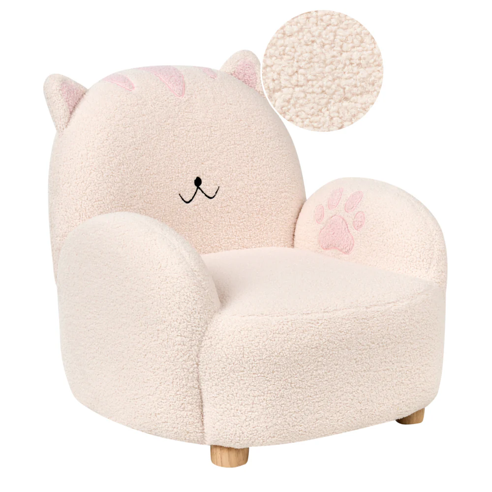 Poltrona per bambini Bouclé Gatto Bianco Sporco Tappezzeria Sedia bassa per bambini Forma