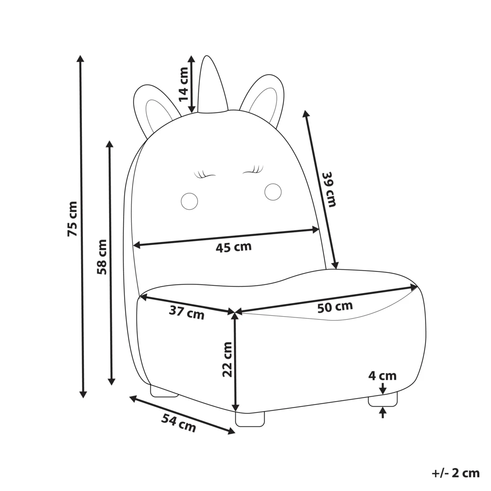 Sedia per animali Rosa Poliestere Imbottita con braccioli Sedile per cameretta per bambini Design moderno Forma di unicorno