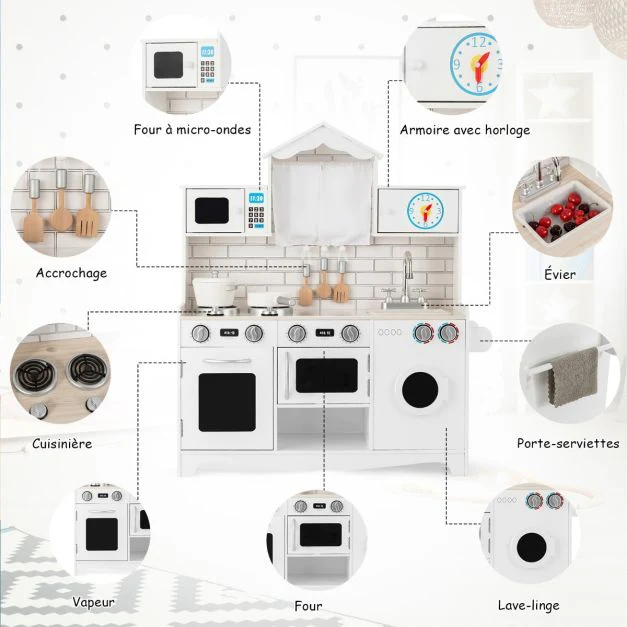 Cucina per bambini in legno 3 anni + cucina per bambini con effetti luminosi e sonori lavatrice microonde