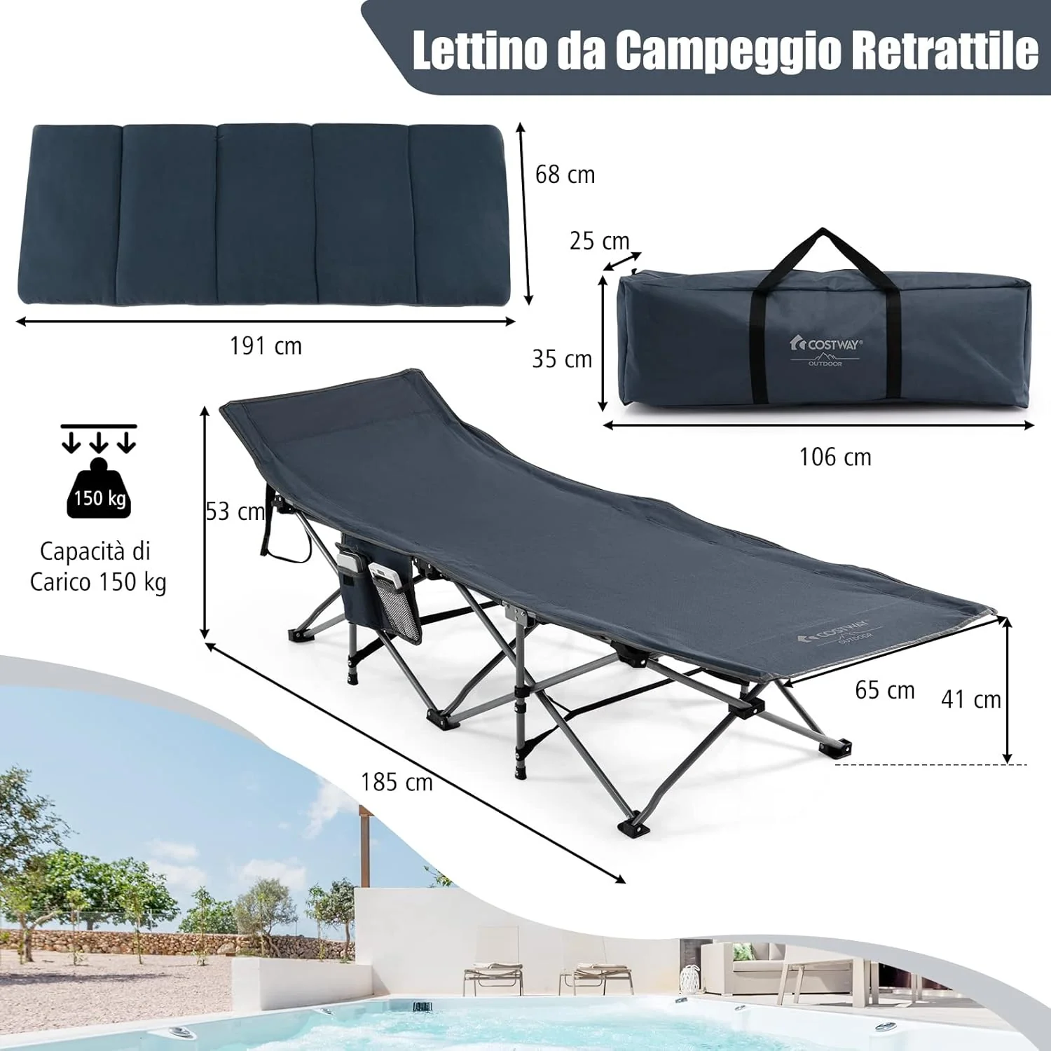 Letto Brandina Pieghevole con Materasso e Cuscino Rimovibili, Borsa da Trasporto, con Struttura Metallica Resistente, per Casa, Ufficio, Campeggio, Carico Fino a 150 kg