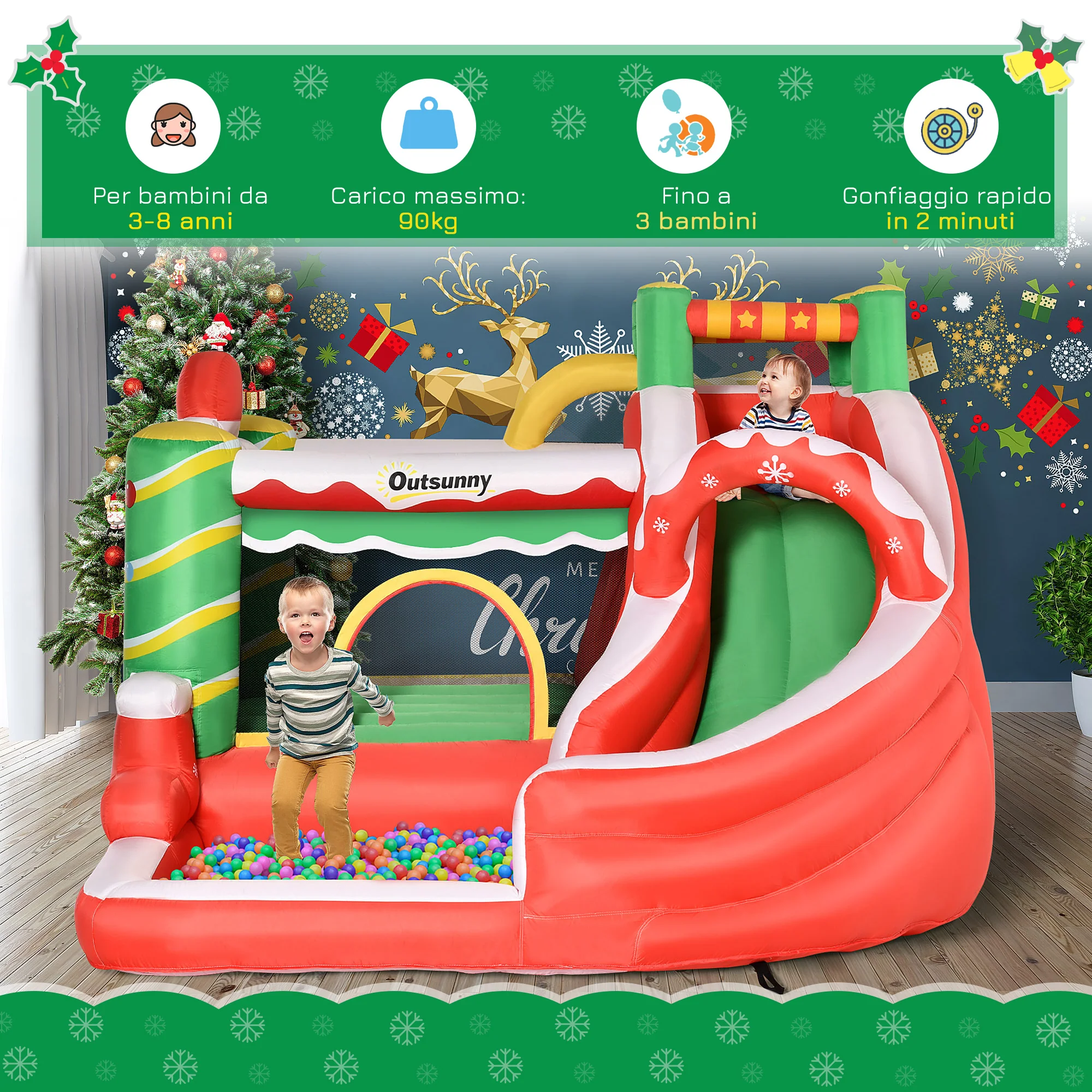EASYCOMFORT Castello Gonfiabile Gigante a Tema Natalizio per Bambini 3-8 Anni con Scivolo e Accessori Montaggio, 290x280x220cm - Multicolore