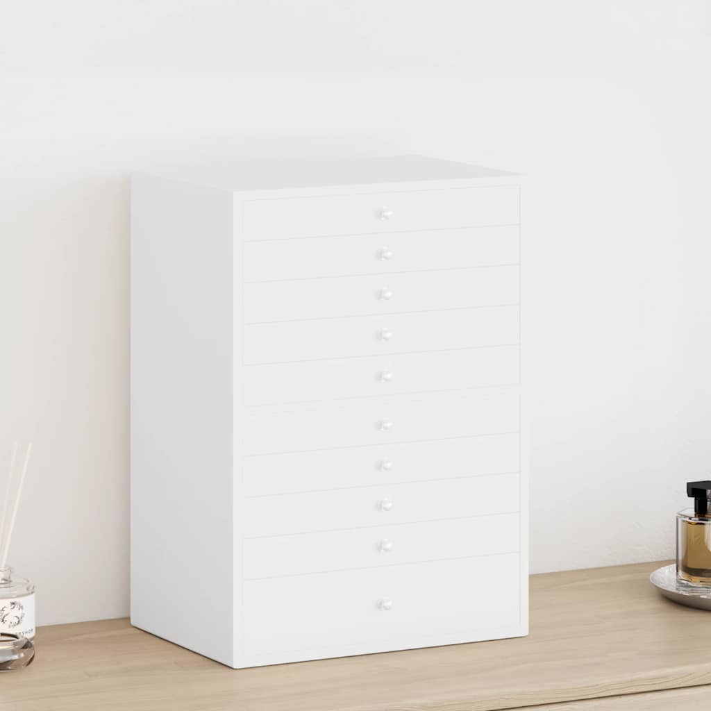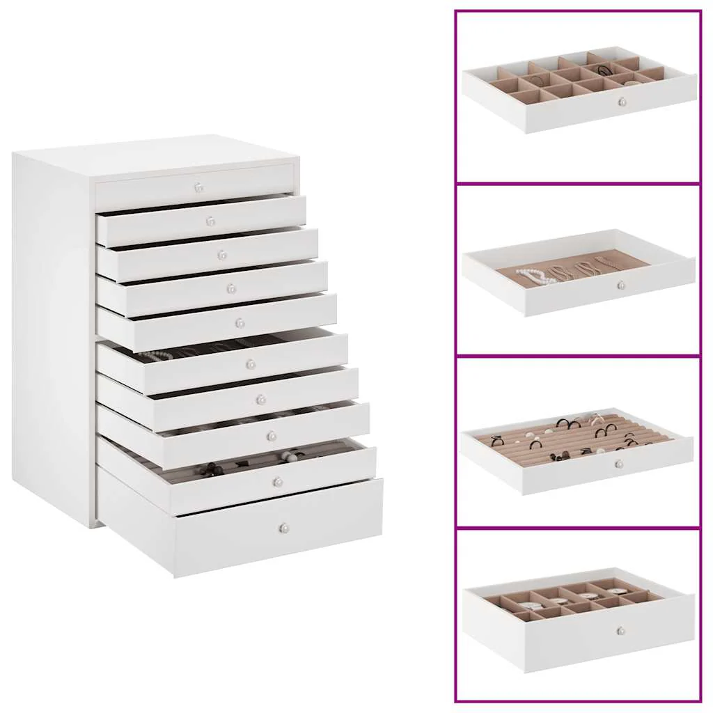 Portagioie 10 Strati con Portaorologi Bianco 29x20,5x40,5 cm