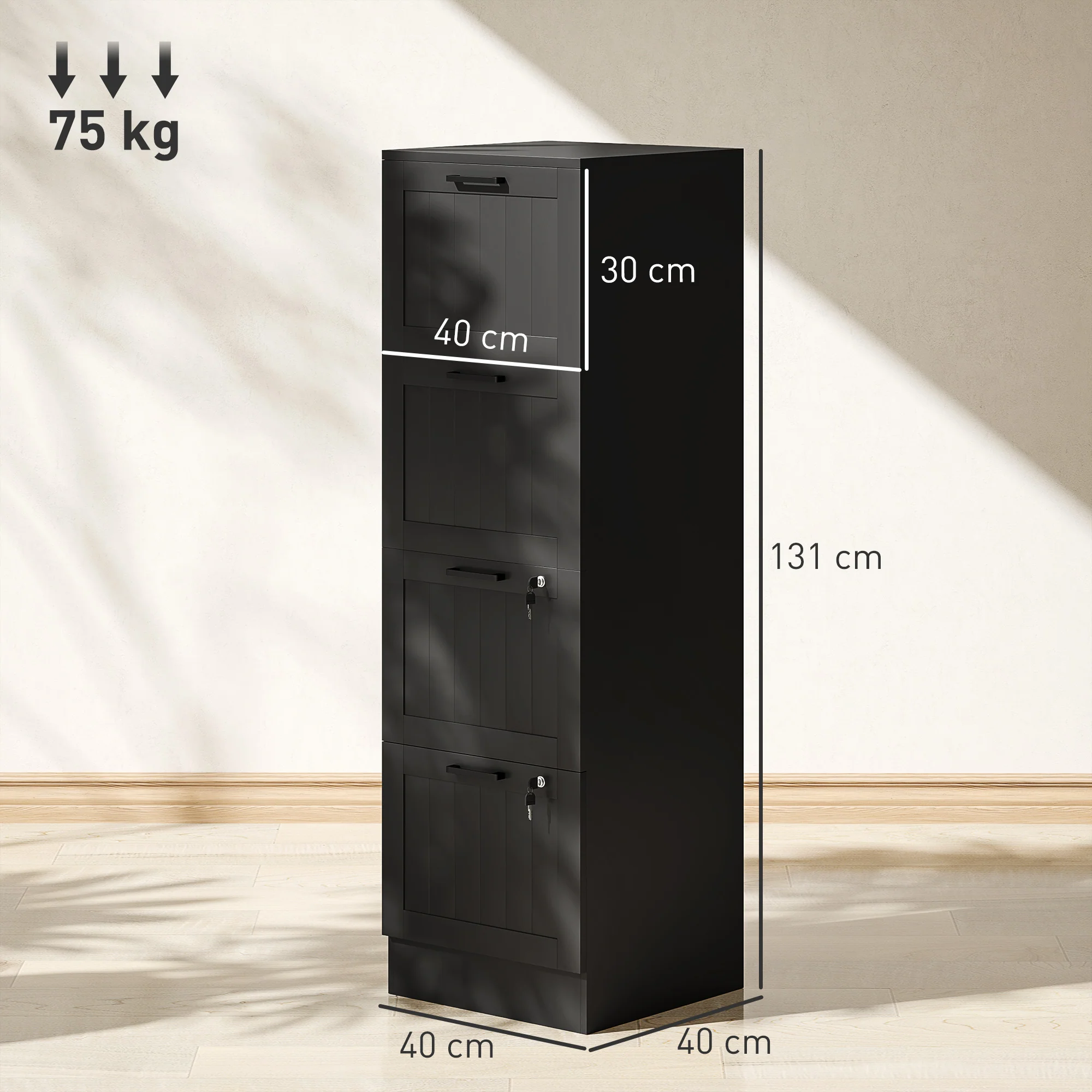 Cassettiera Portadocumenti a 4 Cassetti 40x40x131 cm 2 Serrature in Legno Nero