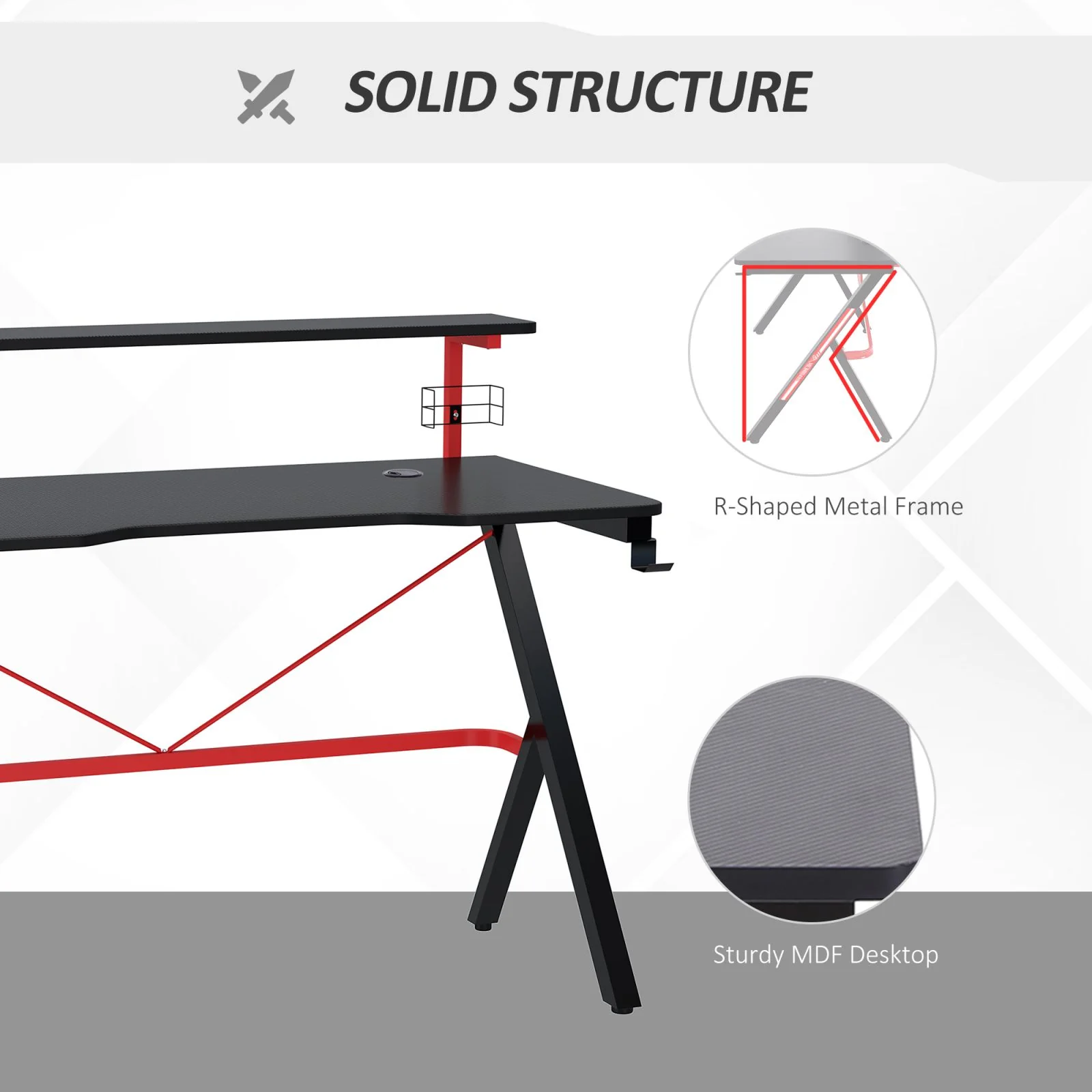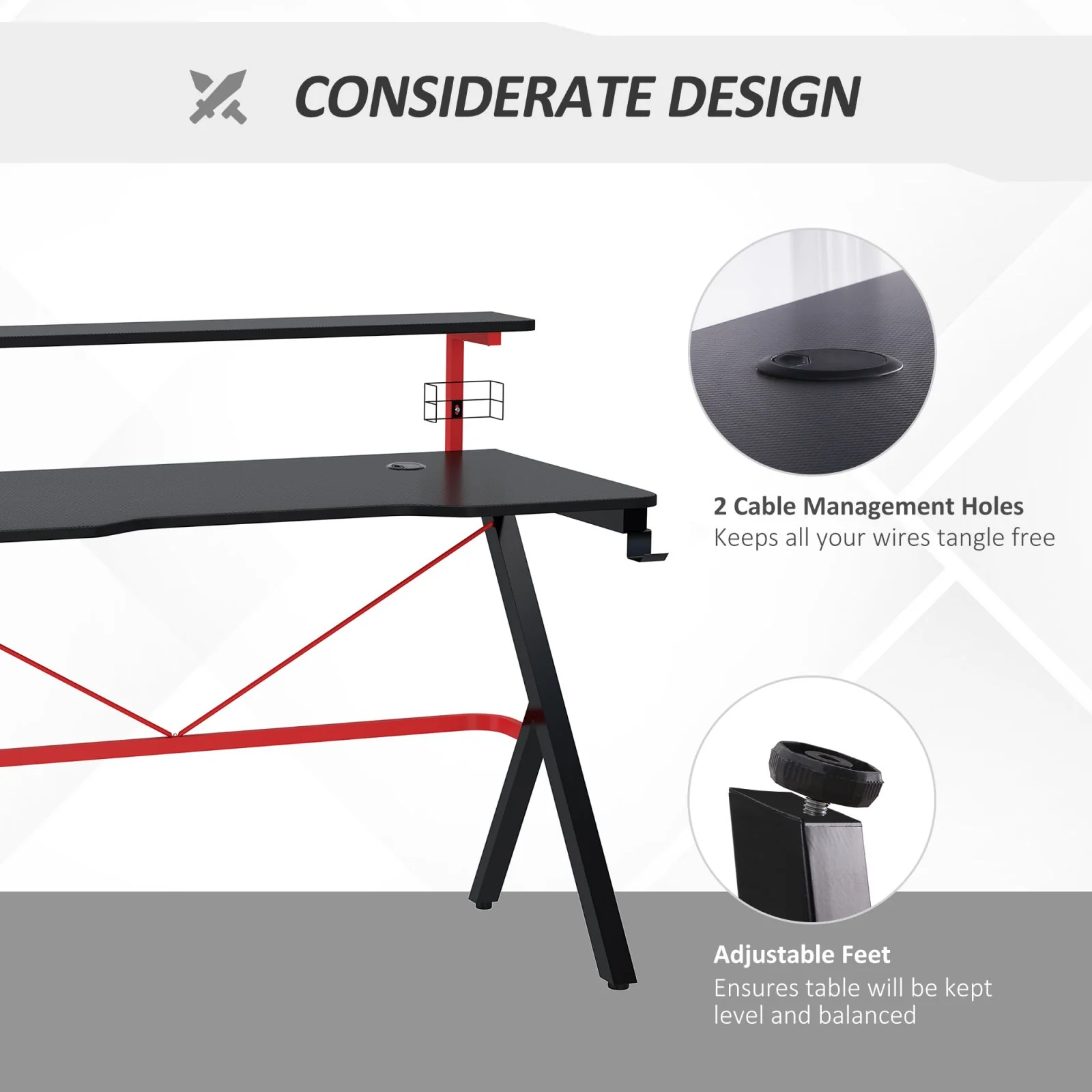 Easycomfort Scrivania da Gaming con Ripiano Monitor, Scrivania per Computer Porta PC con Gancio e Portabicchieri Nera e Rossa, 120x60x97cm