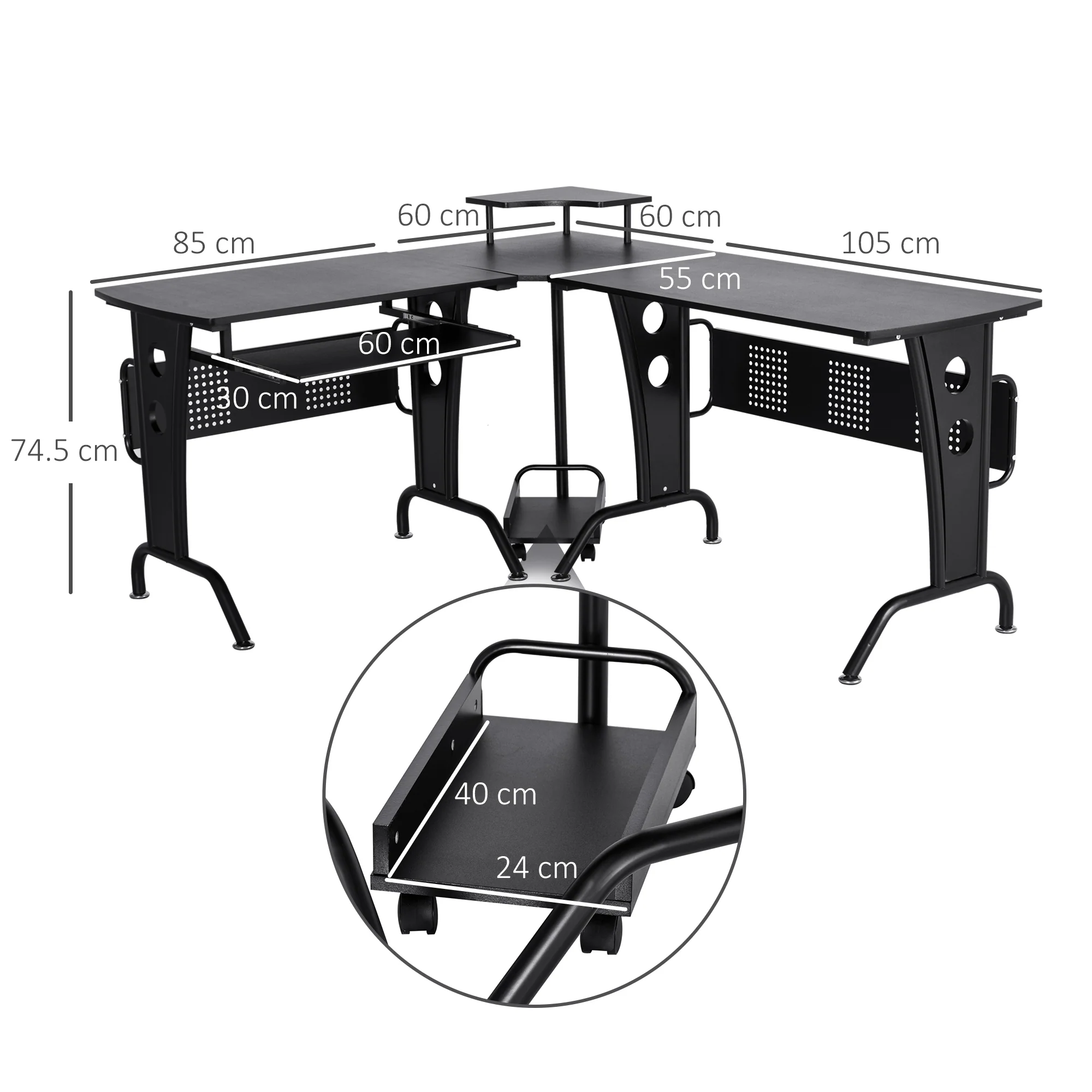 Easycomfort Scrivania Gaming per Casa o Ufficio, Angolare e Salvaspazio con Ripiano Tastiera Estraibile, 165x145x86.5cm, Nera