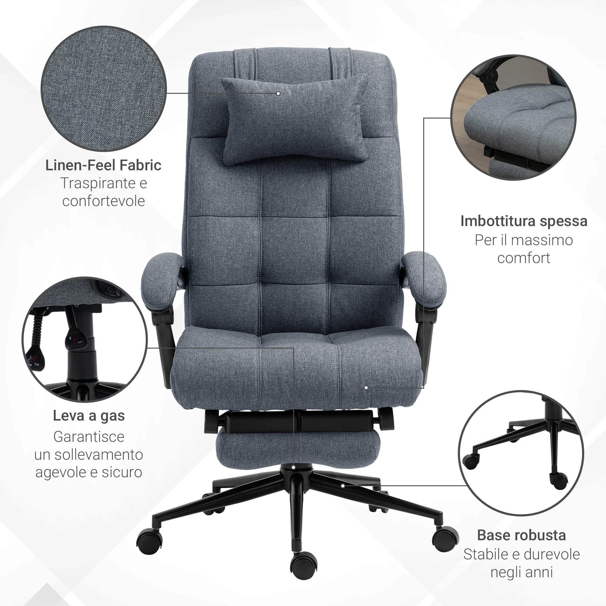 Easycomfort Sedia da Ufficio Ergonomica Reclinabile, Sedia Direzionale con Schiena Alta, Poltrona Ufficio con Poggiatesta e Poggiapiedi Estraibile, 66x76x112-120cm, Grigio