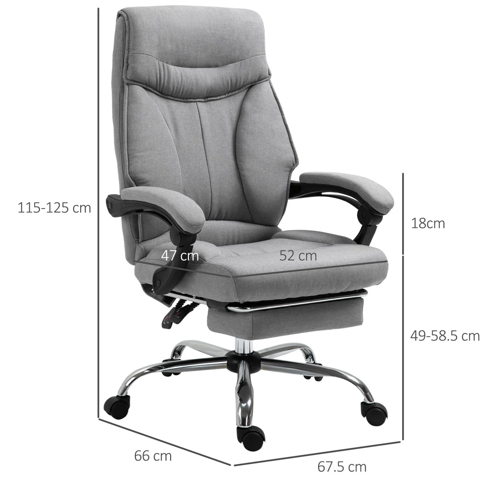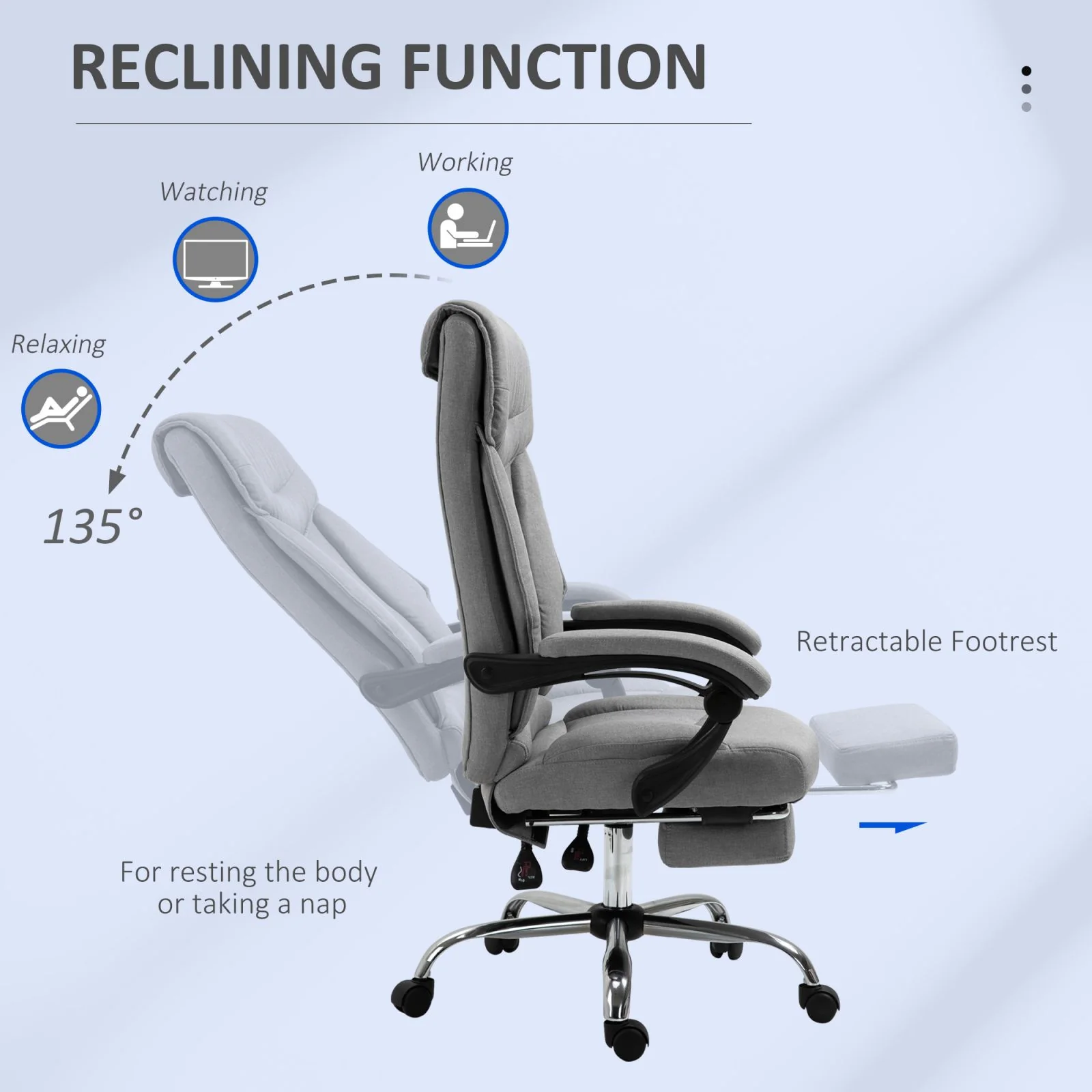 Easycomfort Sedia da Ufficio Ergonomica Girevole, Sedia da Scrivania con Rotelle, Poggiapiedi Retrattile e Reclinabile 135°, Altezza Regolabile, Grigio