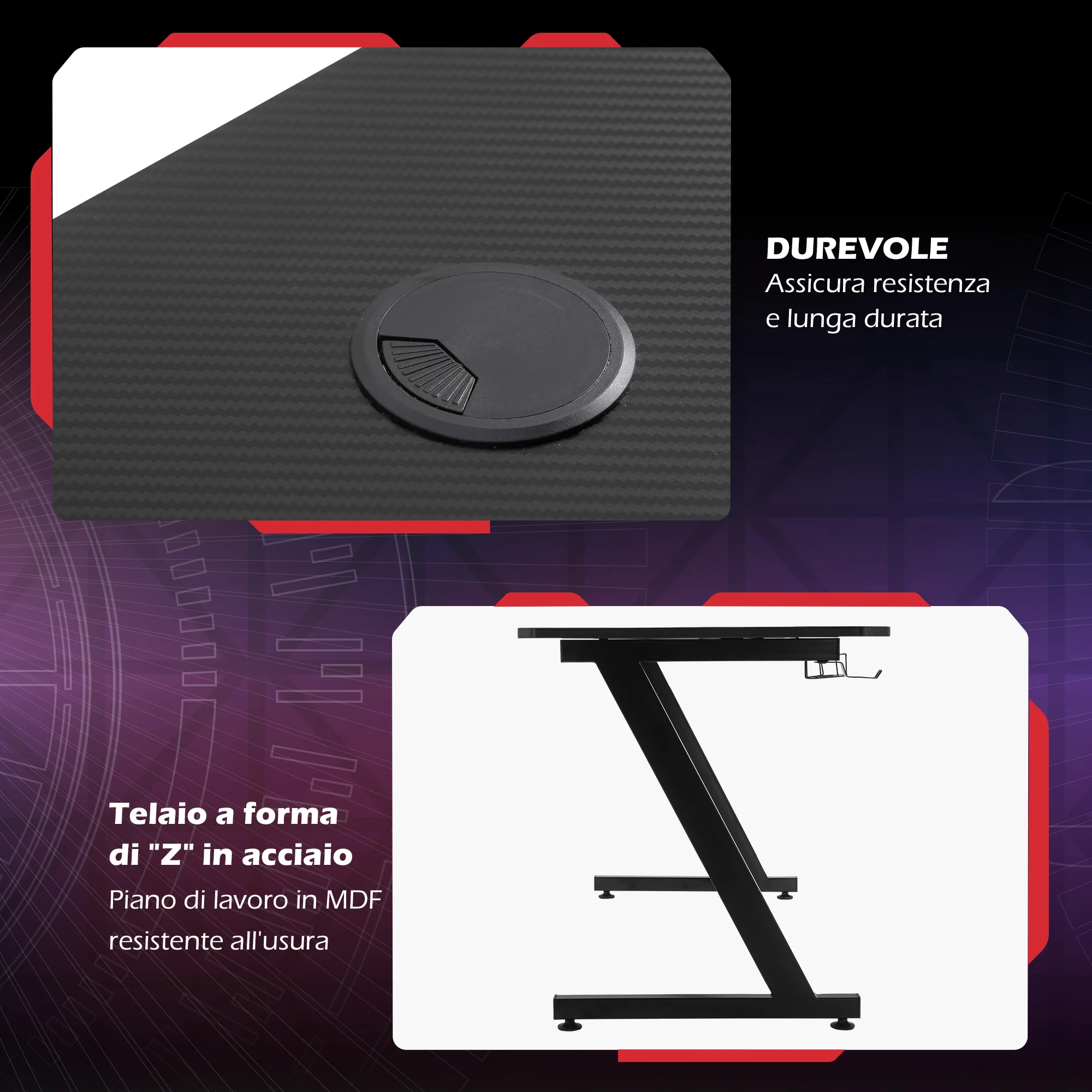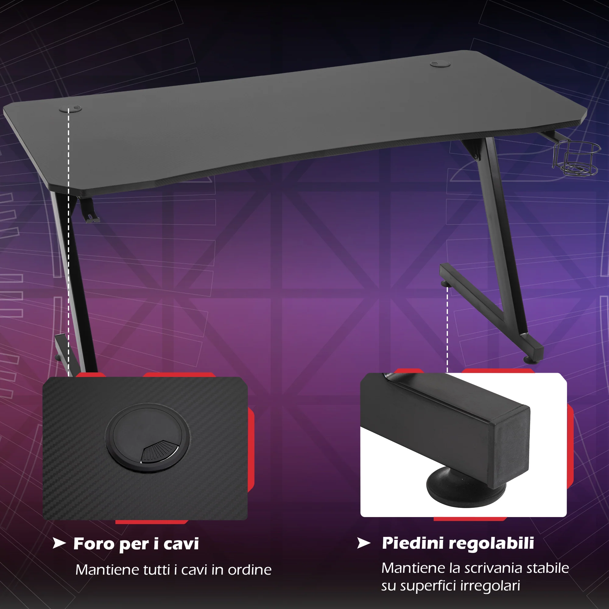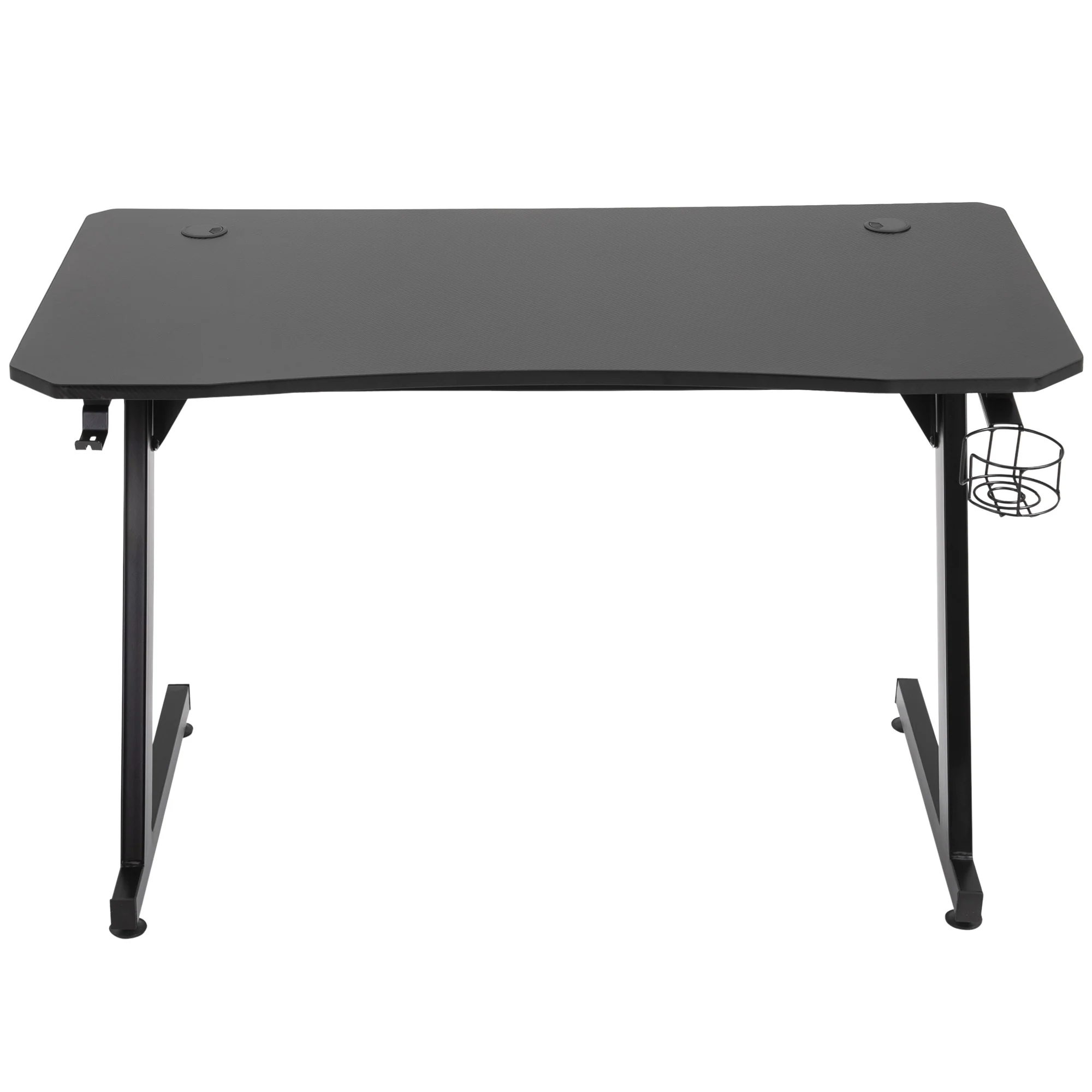 Easycomfort Scrivania da Gaming in Legno e Acciaio con Passacavi, Scrivania per Computer Portabicchieri e Gancio per Cuffie, Nero,120x65x74.5cm