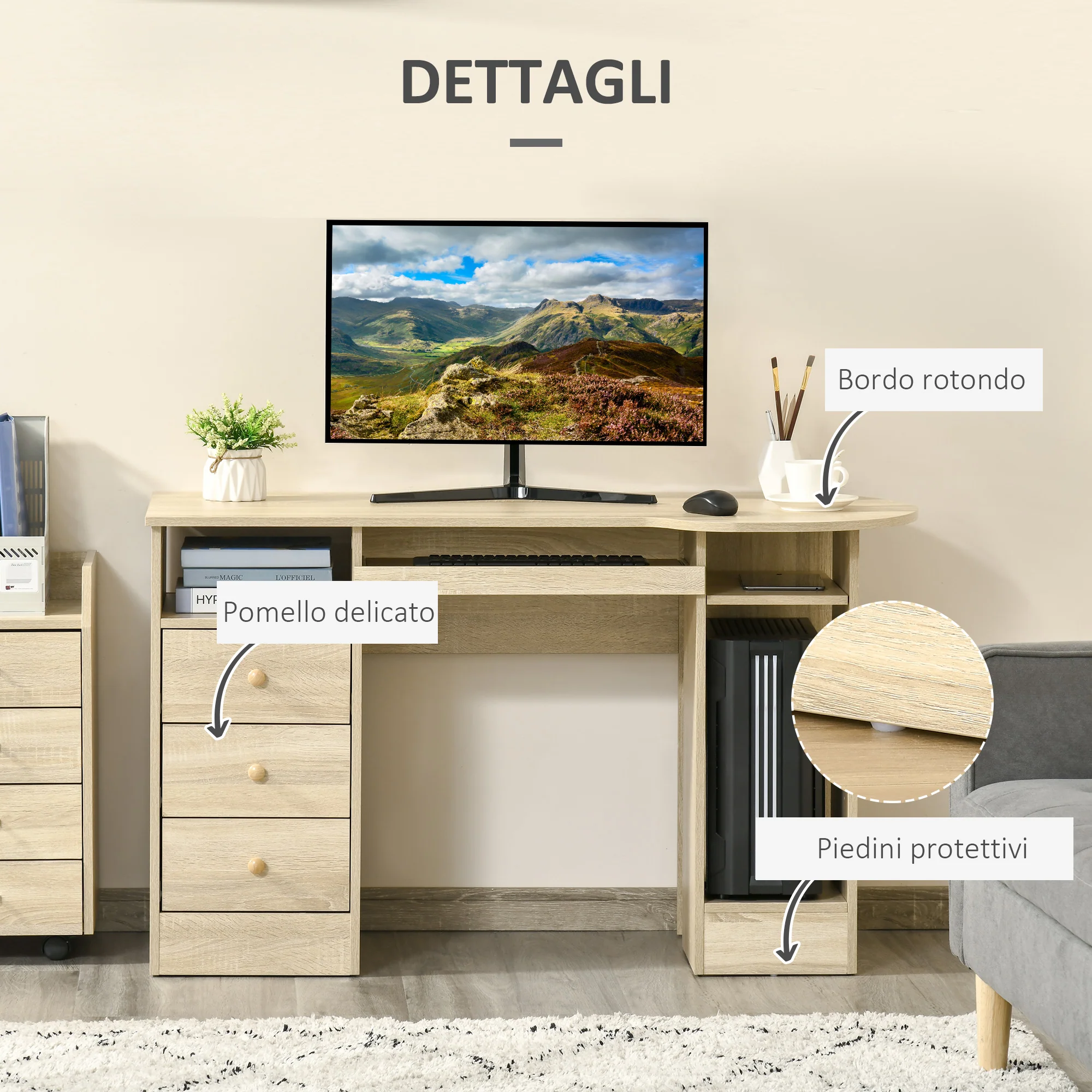 Easycomfort Scrivania da PC per Ufficio con Scaffali, Cassetti e Ripiano Testiera in Legno, 125x60x74cm