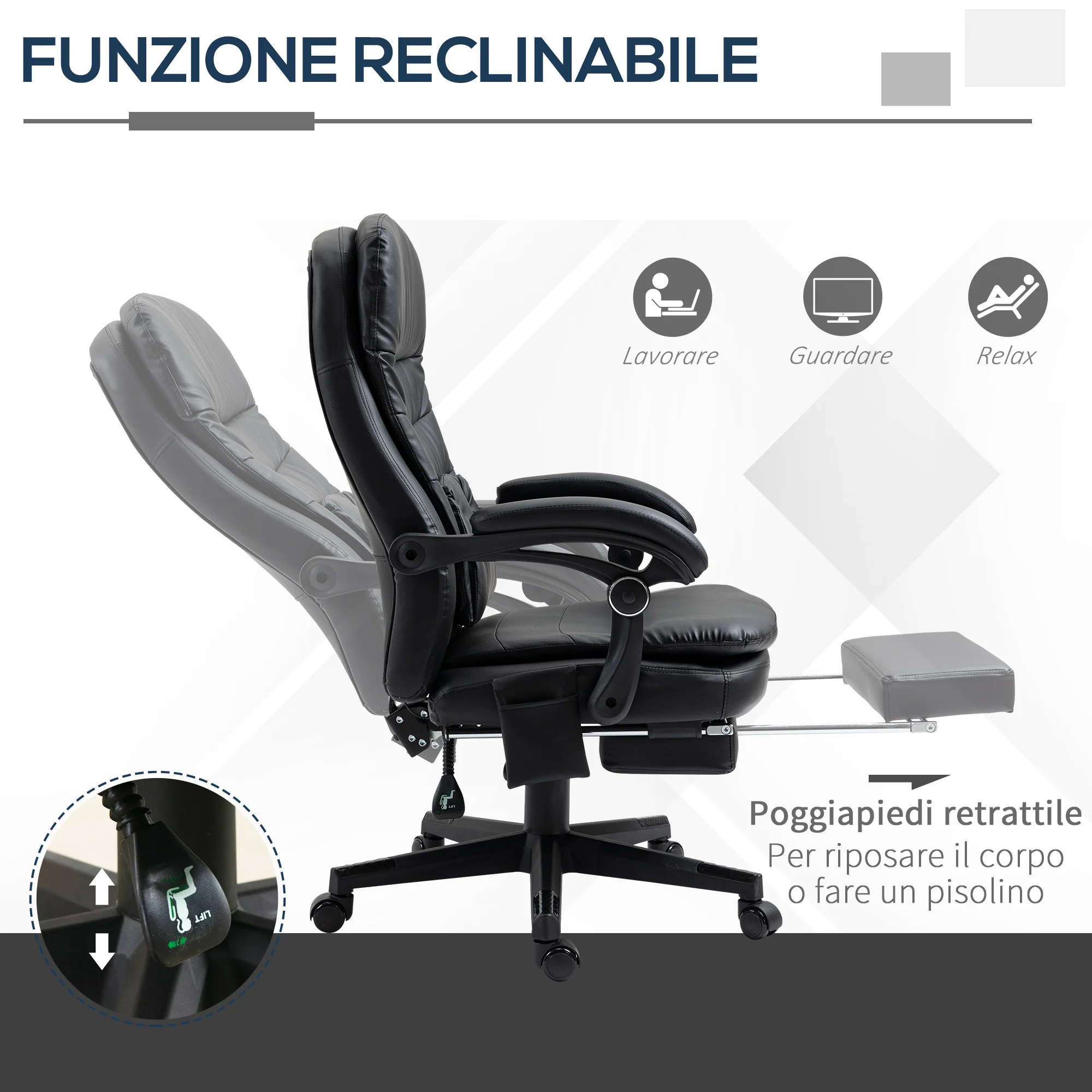 Easycomfort Sedia da Ufficio Massaggiante in Similpelle con Presa USB, 64x69x107-115cm, Nero