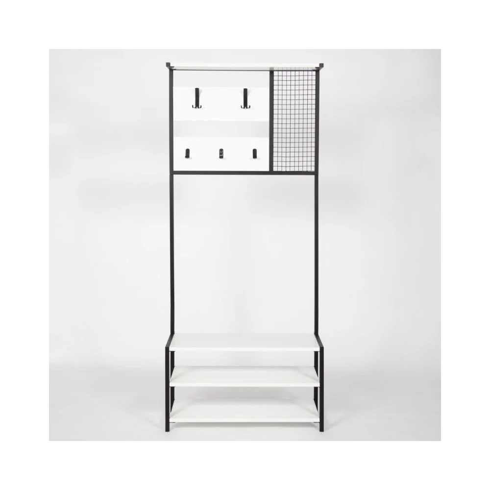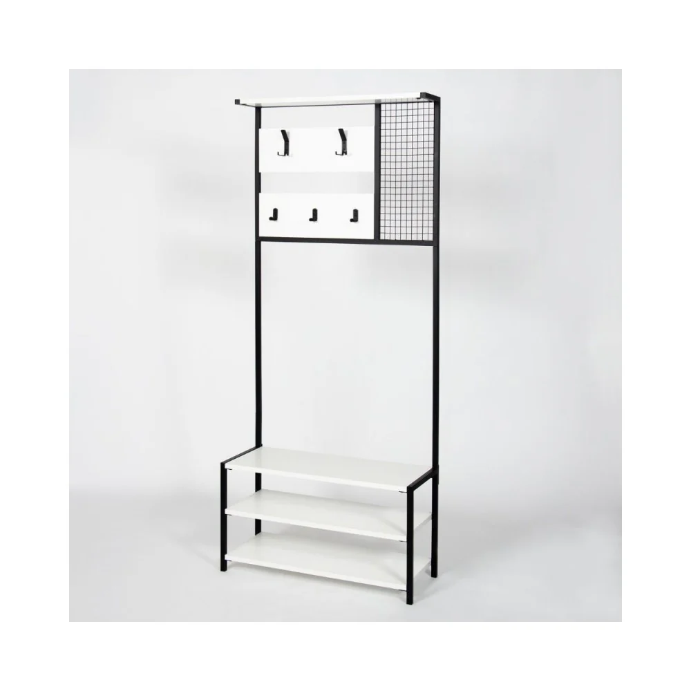 Scaffale ingresso appendiabiti in metallo nero con particolari bianco Nomad