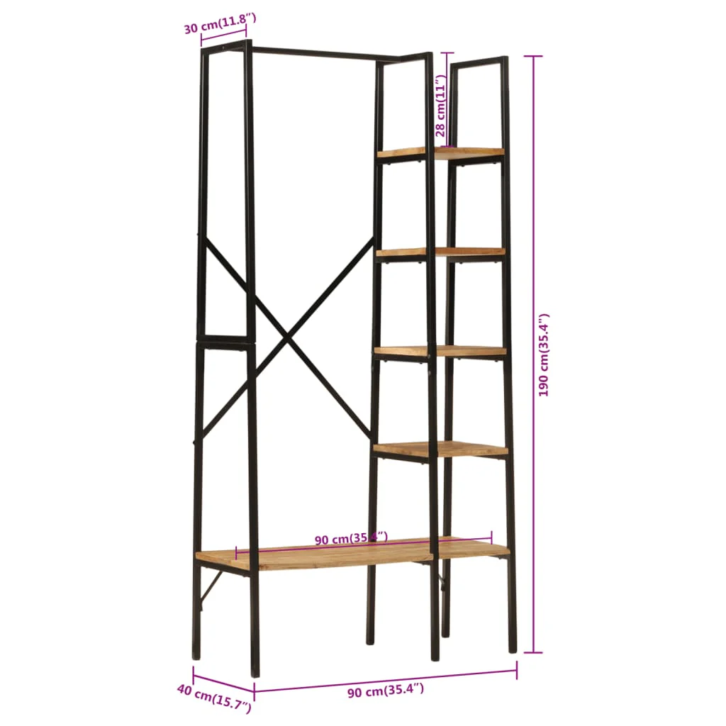 Appendiabiti con Ripiani 90x40x190cm Legno Massello Mango Ferro
