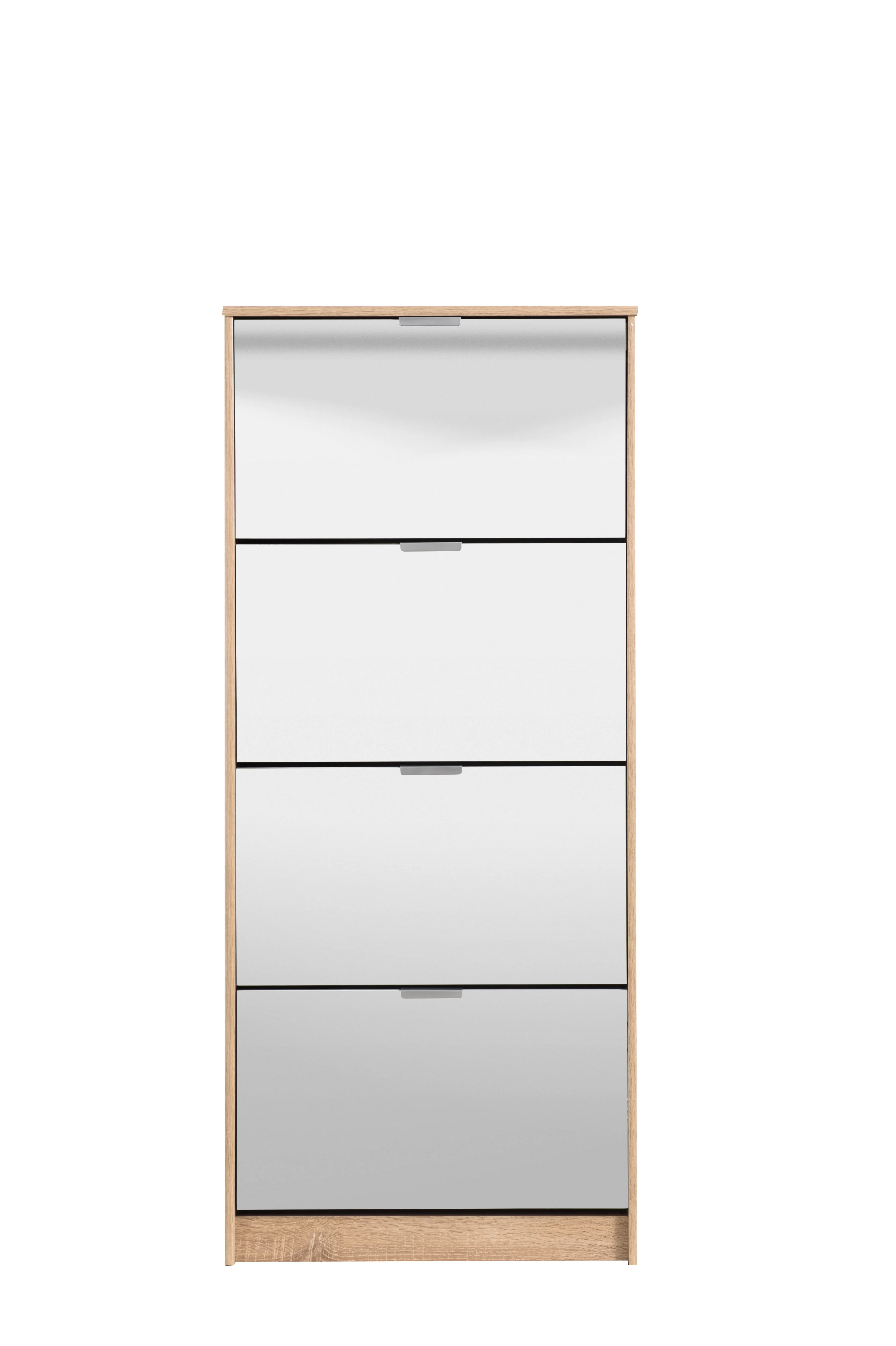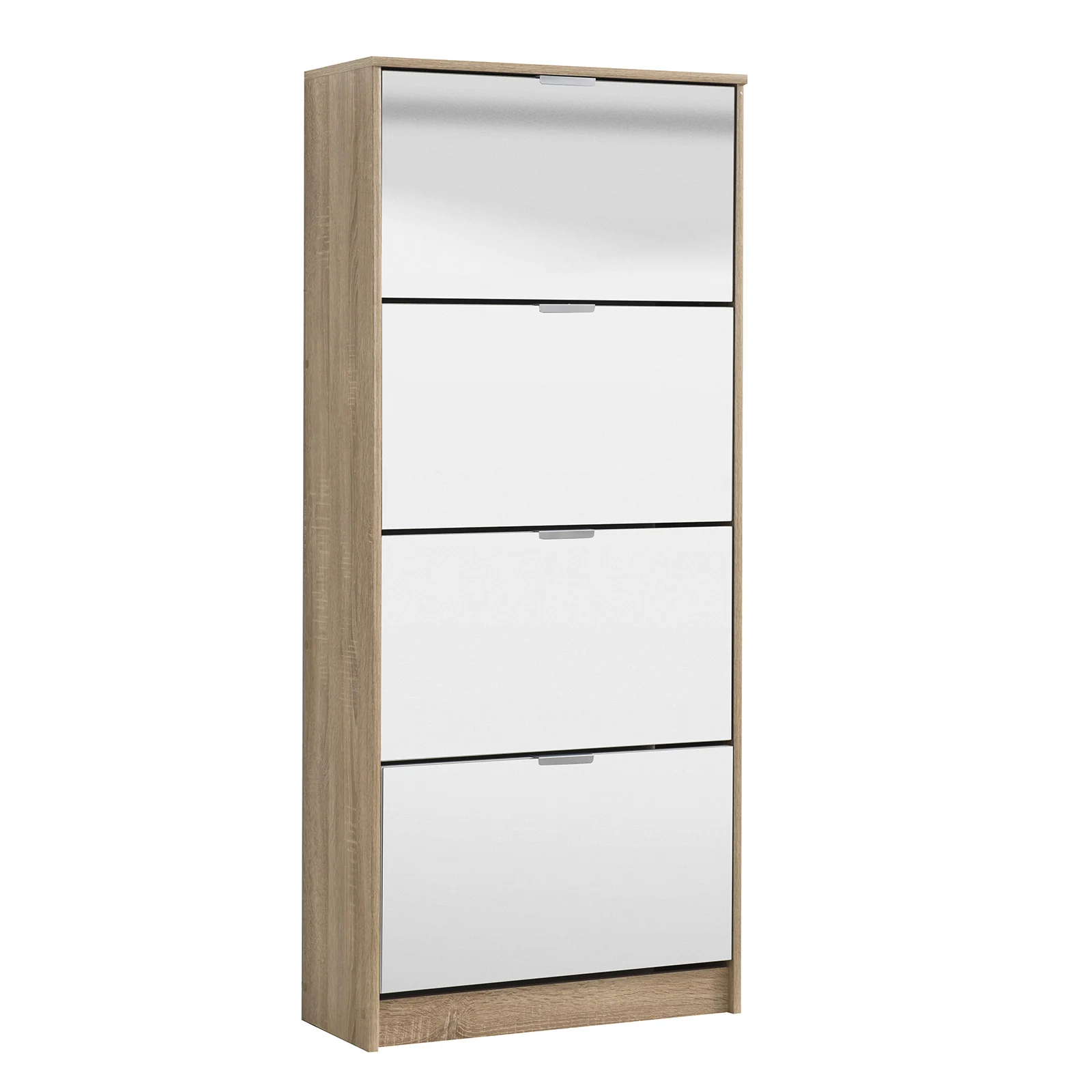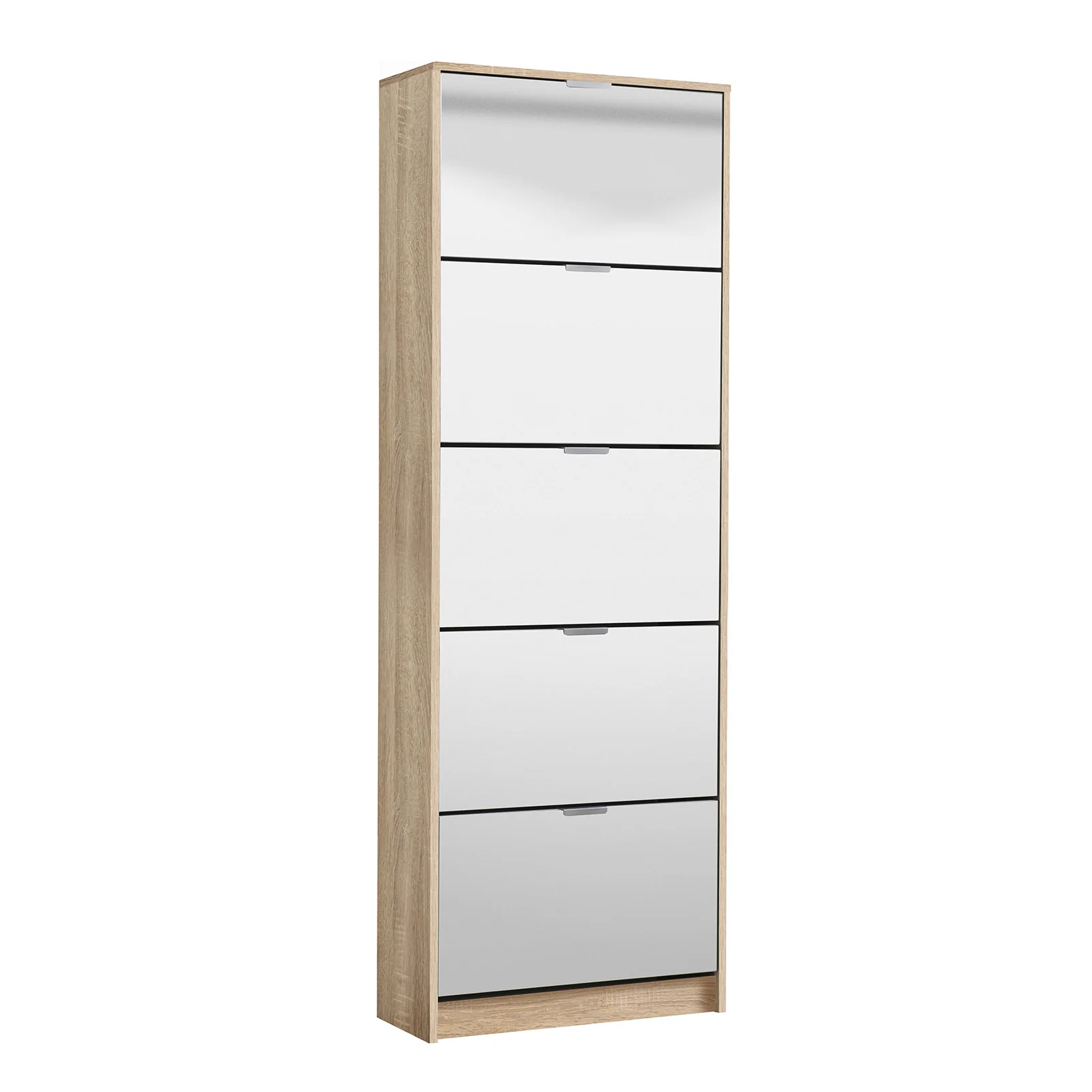 Scarpiera doppia profondità "Iceland" in legno con specchio, soluzione porta scarpe salva-spazio per la casa
