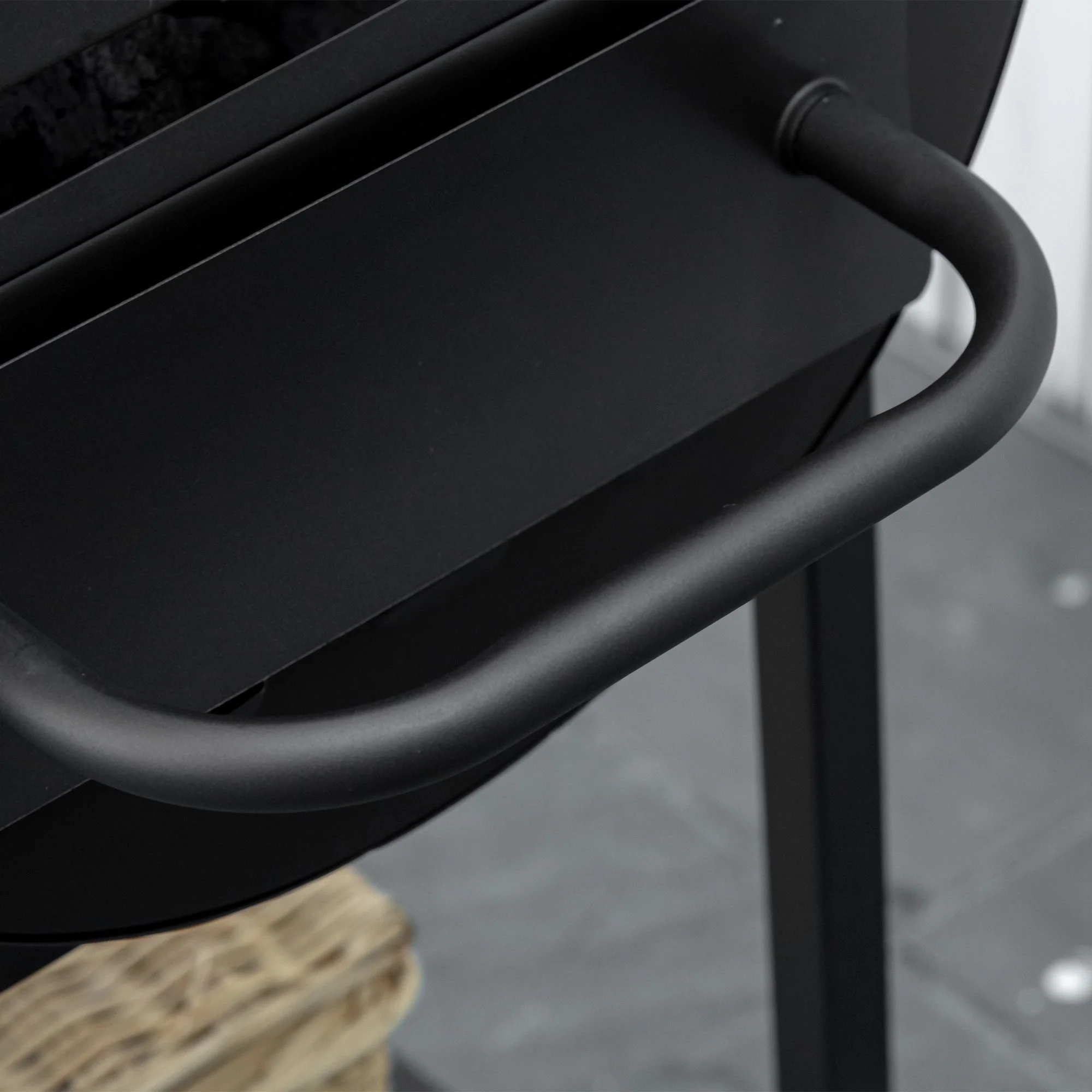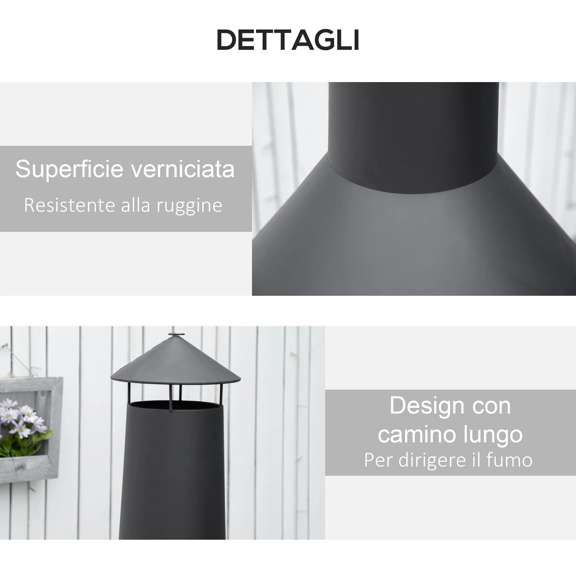 EasyComfort Braciere da Giardino in Metallo con Camino, Porta Legna e Attizzatoio Ø44,5x133 cm, Nero