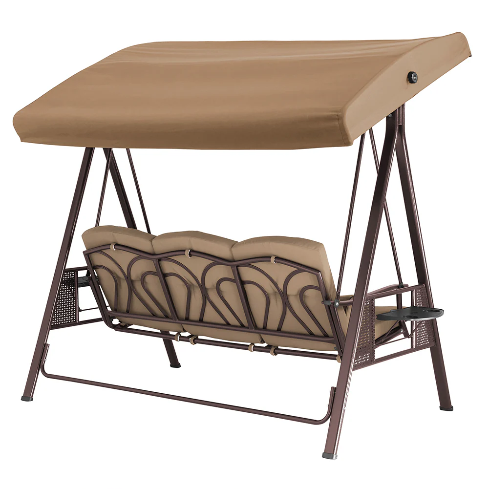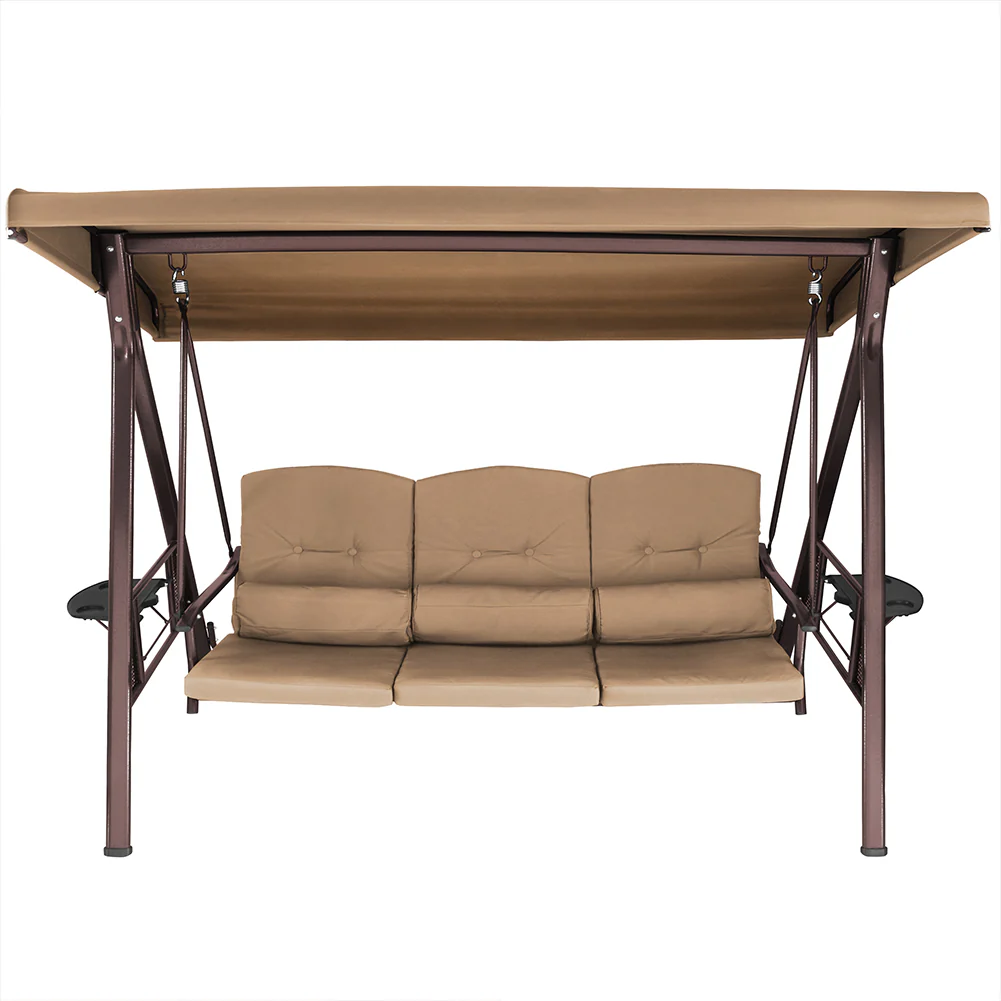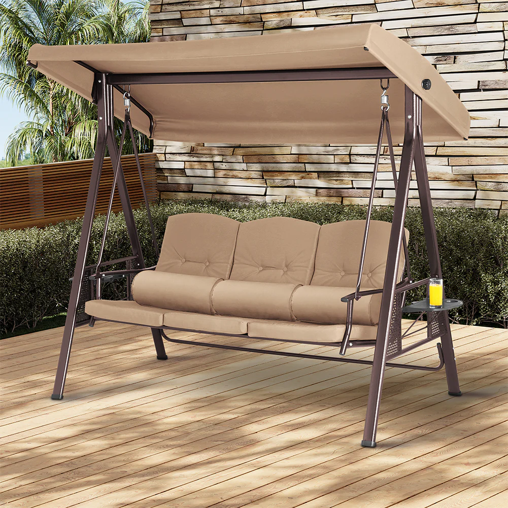 Dondolo Giardino Ibiza 3 Posti con Parasole Cuscini e Vassoi Pieghevoli Marrone