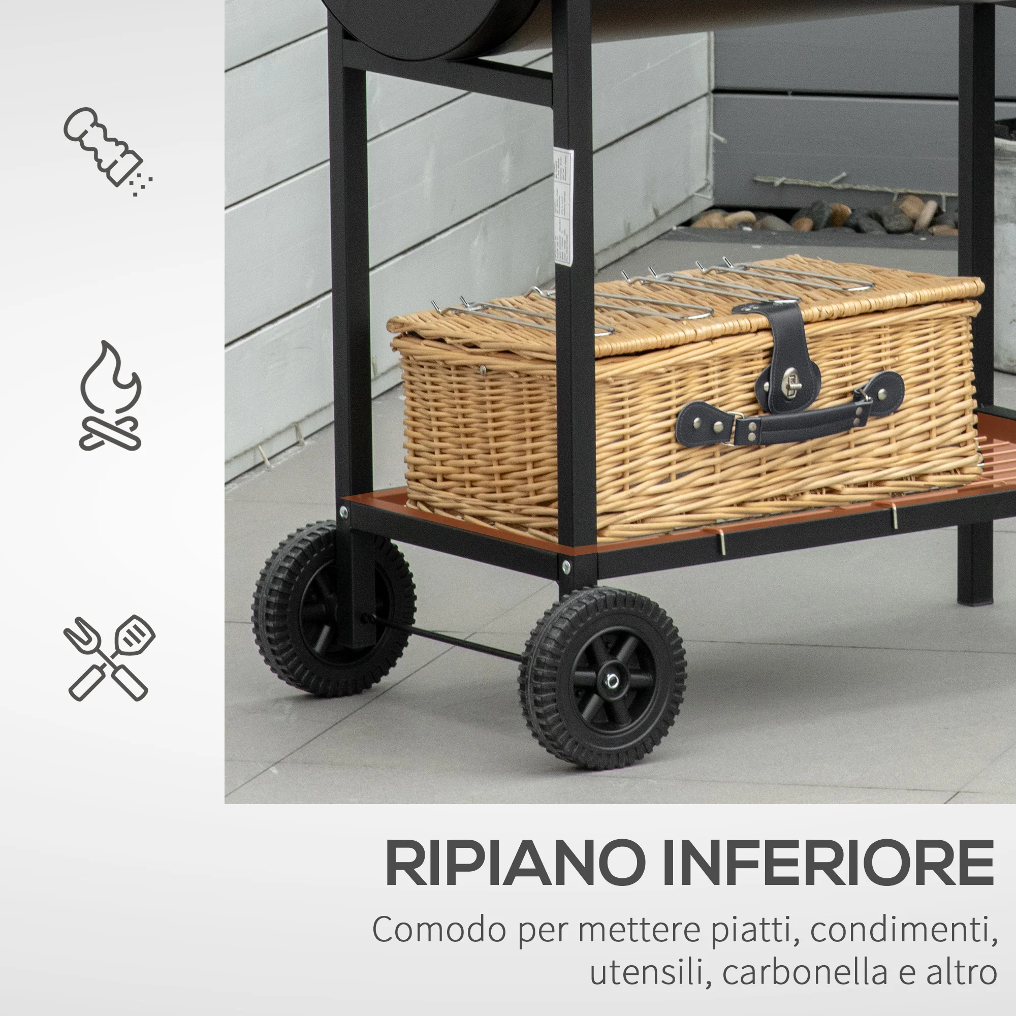 Easycomfort Barbecue in Acciaio con 2 Griglie Indipendenti, 2 Ruote e Ripiano Inferiore | Nero | 90cm x 45cm x 96cm