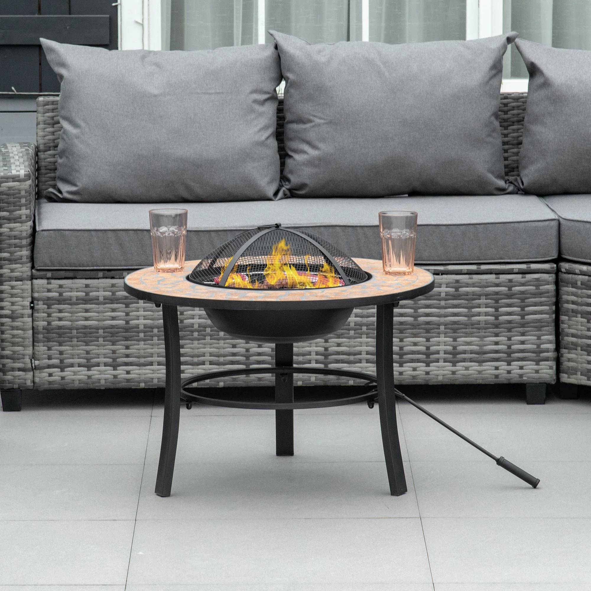 Easycomfort Braciere da Giardino con Coperchio Parascintille, Attizzatoio e Piano in Ceramica, 68x68x45 cm, Nero