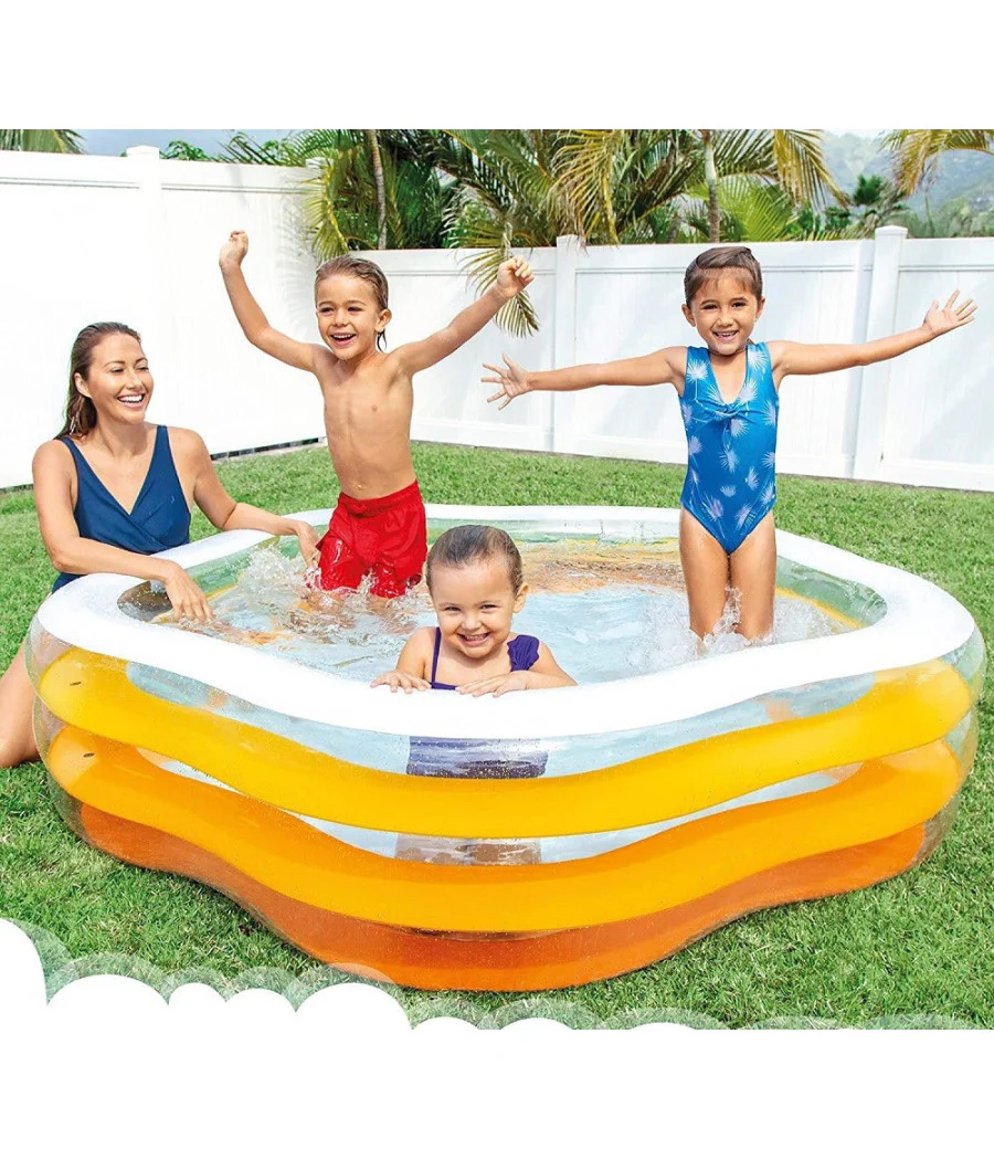 Trade Shop - Piscina Gonfiabile A Forma Di Stella 3 Anelli Bambini 185x180x53 Cm Estate