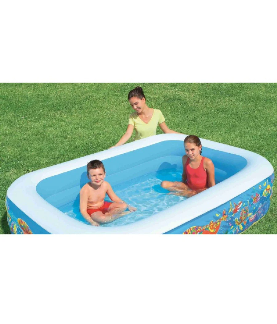 Trade Shop - Piscina Gonfiabile Family Rettangolare 3 Anelli Fantasia Pesci 229x152x56cm
