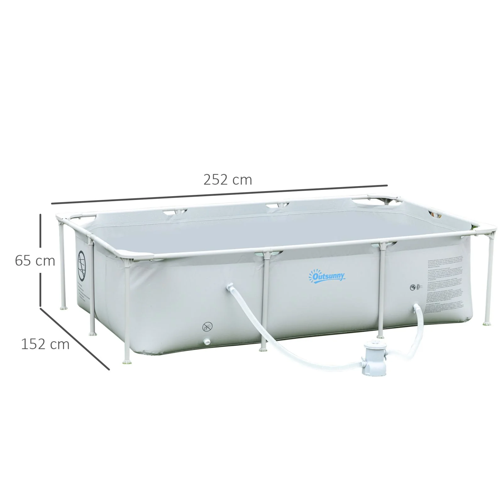 Easycomfort Piscina Fuori Terra Autoportante, Piscina Rigida Rettangolare con Filtro e Valvola in Acciaio e PVC, Grigio, 252x152x65cm