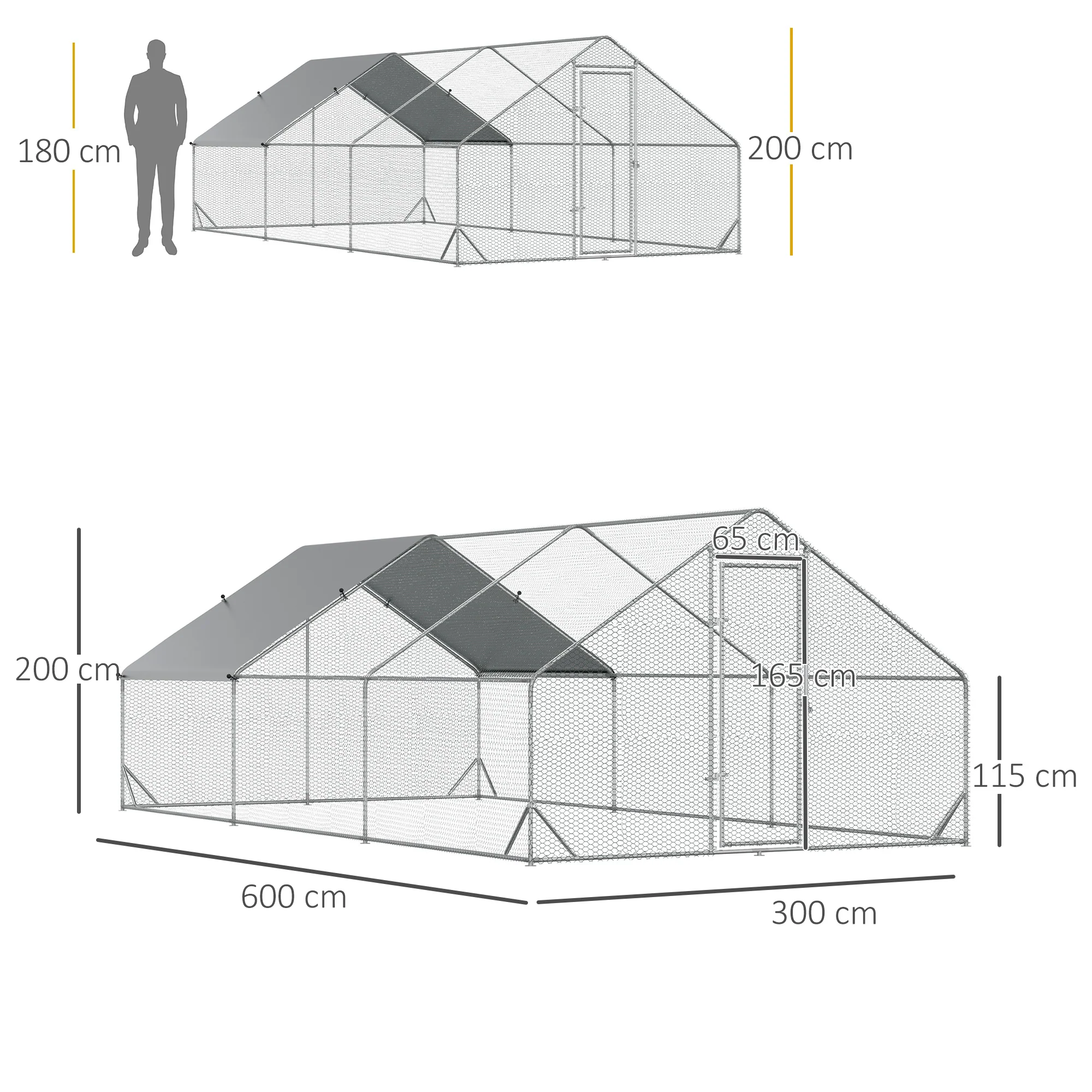Easycomfort Pollaio da Giardino con Telaio Zincato, Copertura Impermeabile e Rete Esagonale, 3x6x2m, Argento
