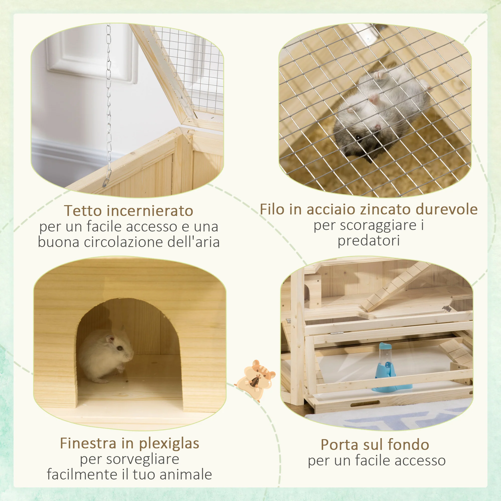 Easycomfort Casetta per Criceti in Legno a 3 Livelli con Tetto Apribile e Parete Trasparente, 115x60x55cm