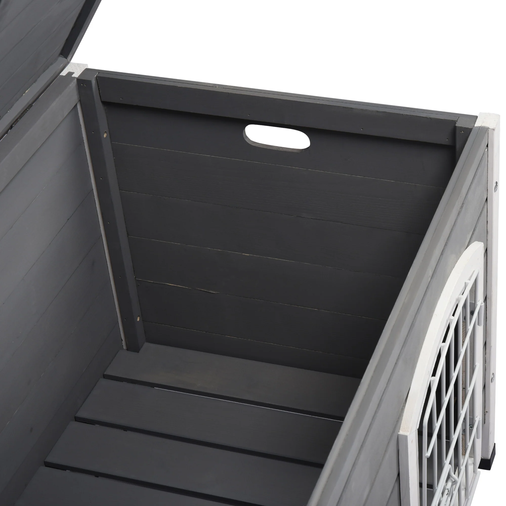 Easycomfort Cuccia per Cani da Esterno in Legno Impermeabile con Porta Richiudibile, 80x55x53.5 cm, Grigia