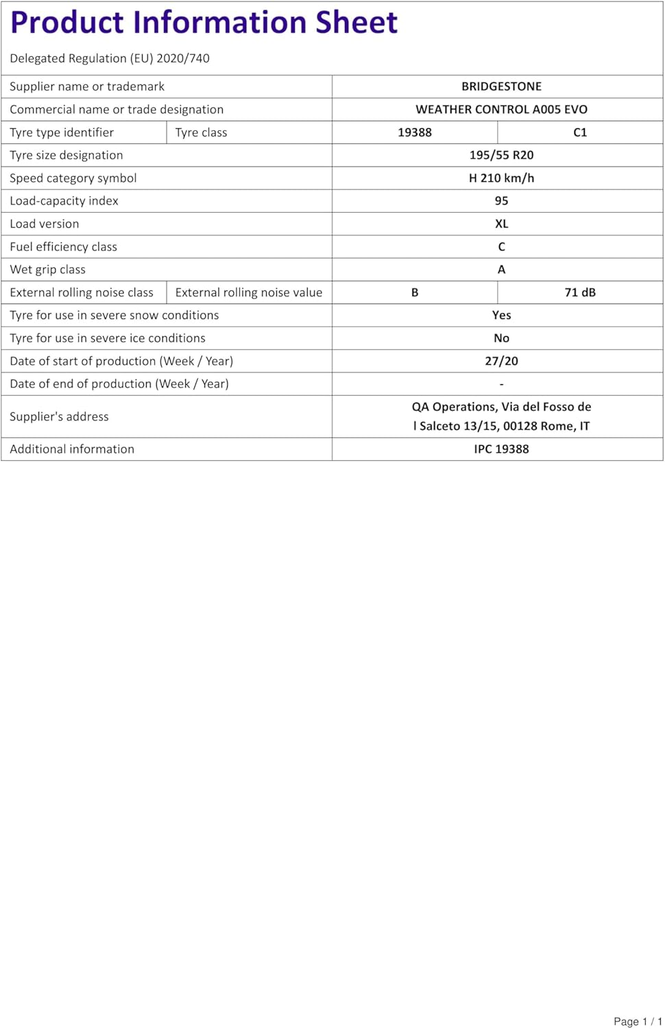 Bridgestone 77919 Tyre 195/50 R15 82V Weather Control A005 Evo All Seasons