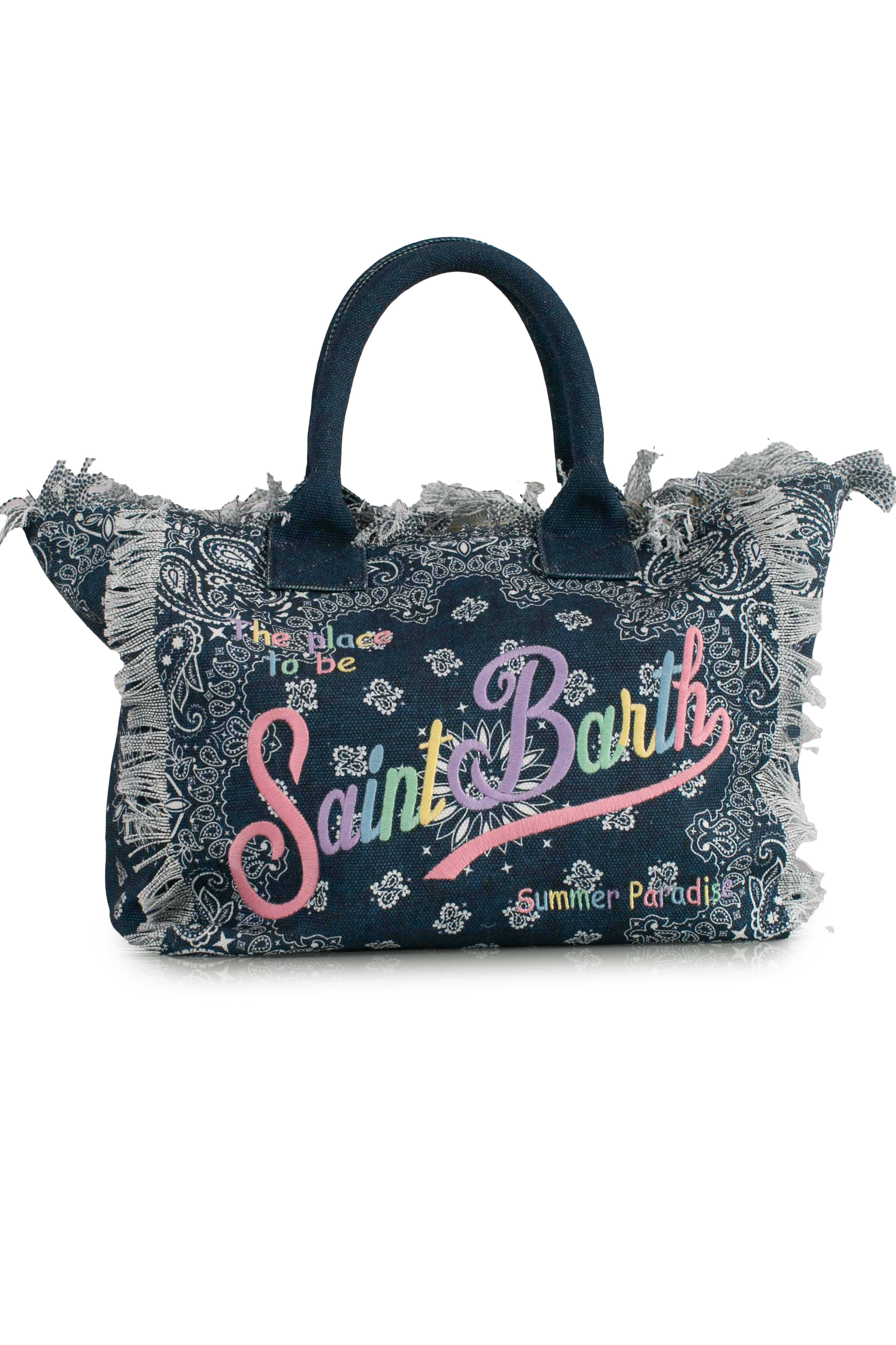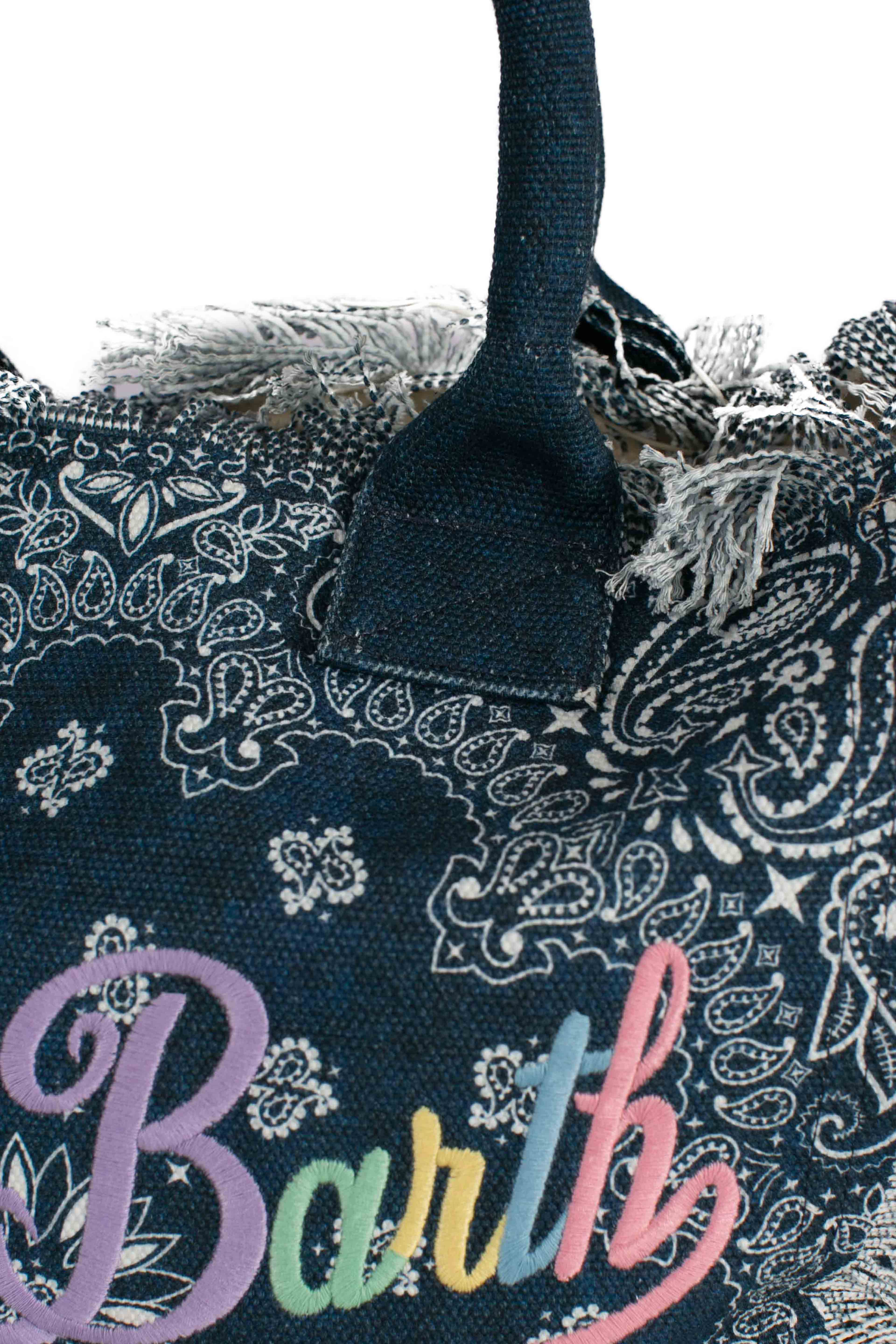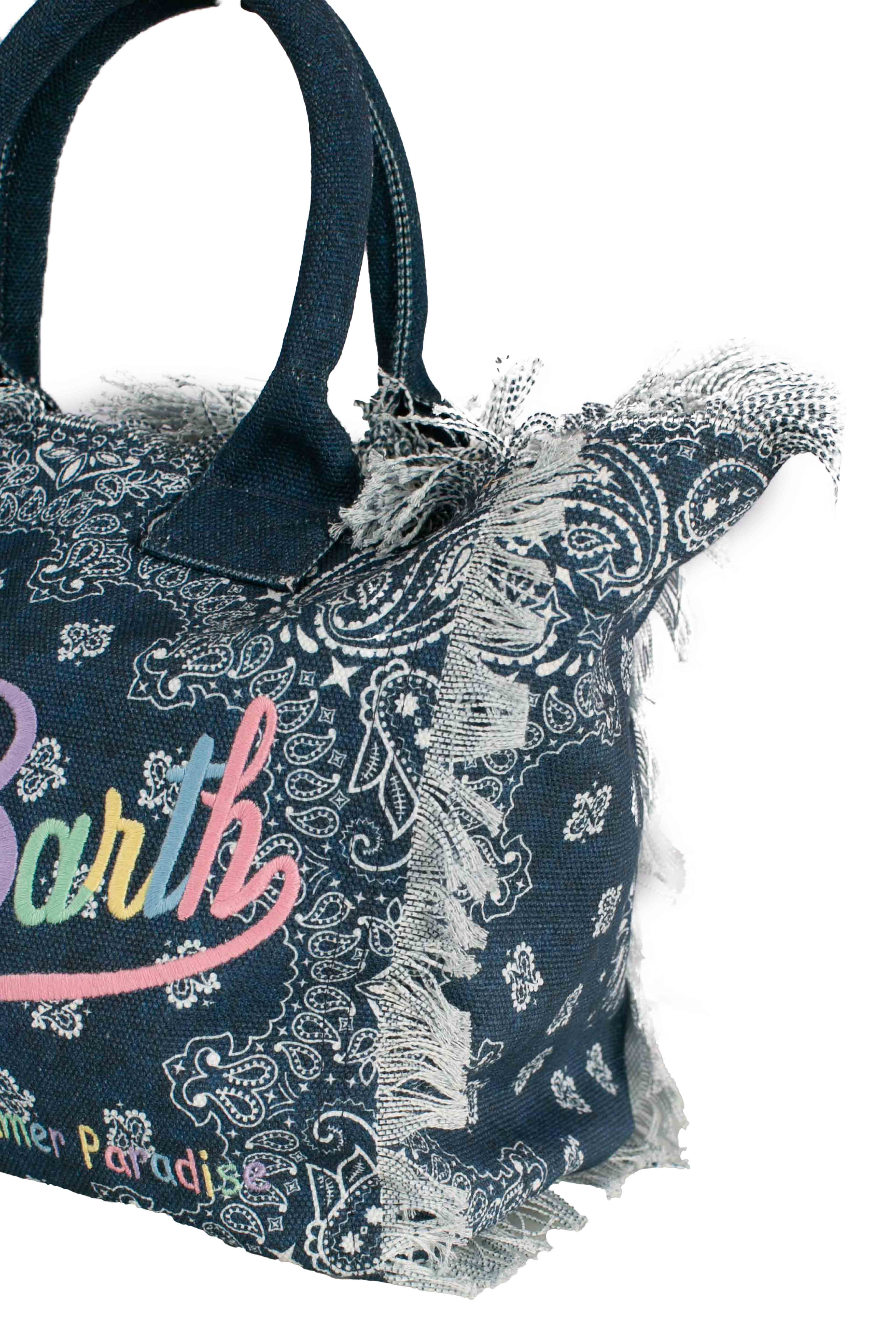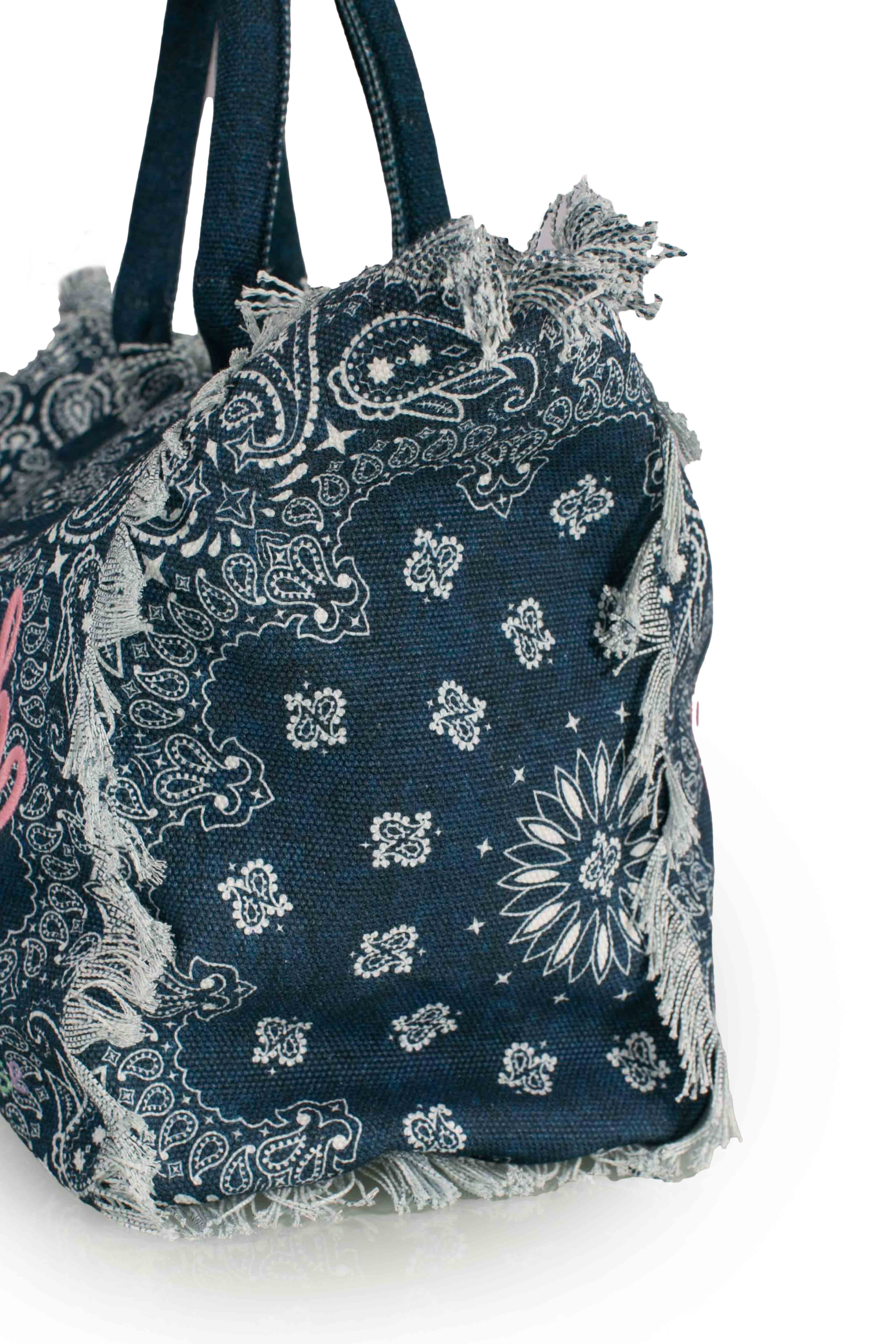 Borsa a spalla Vanity in canvas di cotone denim blu con stampa bandana