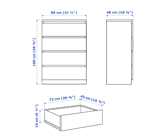 Cassettiera MALM IKEA 4 Cassetti, Grigia, 80x100 cm