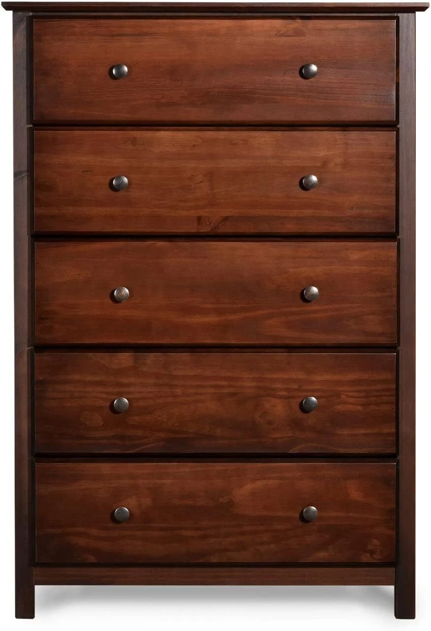 Cassettiera Shaker a 5 Cassetti in Legno Massello con Finitura Ciliegio – Organizer per Camera da Letto