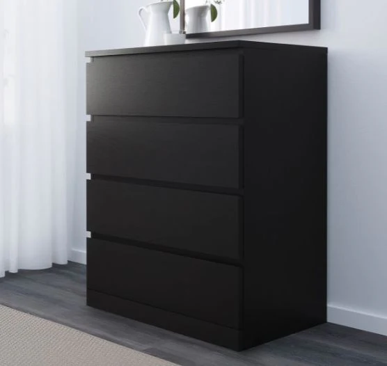 Cassettiera MALM 4 Cassetti, Nero-Marrone, 80x100 cm