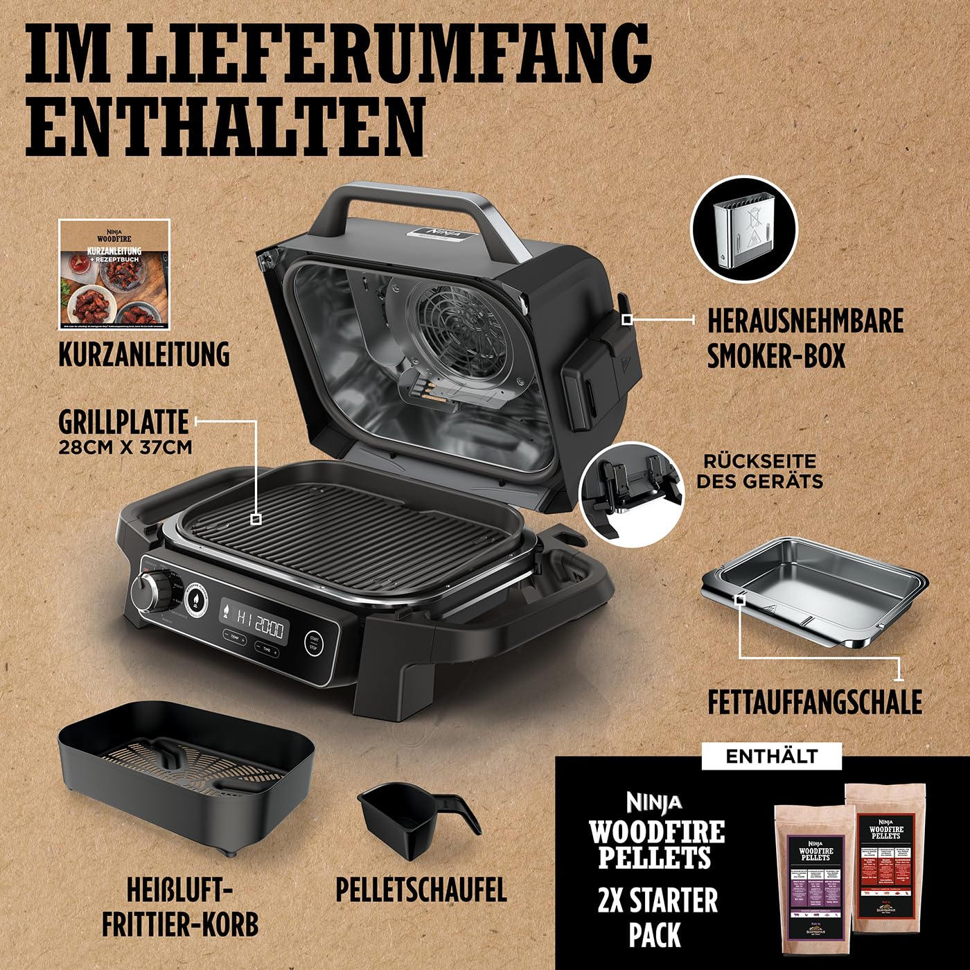 2025 Ninja Woodfire Barbecue Elettrico 7-in-1 con Affumicatore e Friggitrice ad Aria
