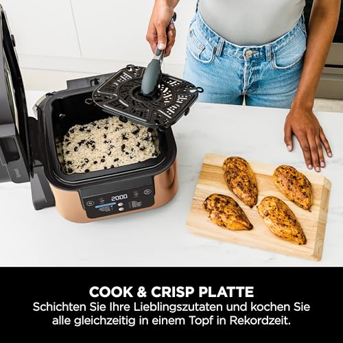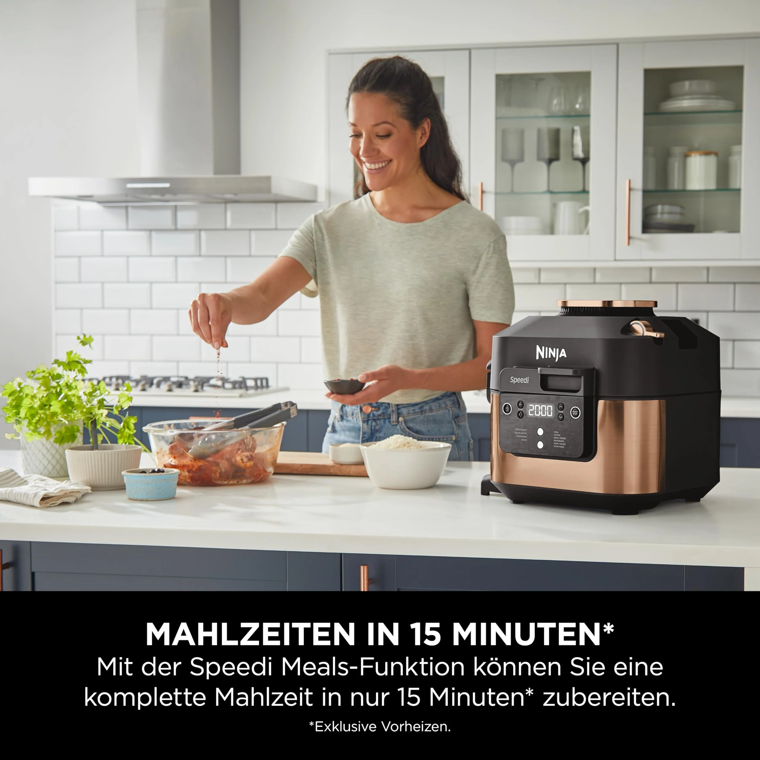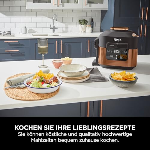 2025 Ninja Speedi Multicooker, 5,7L, 10-in-1 Multicooker, Friggitrice ad aria, Slow Cooker, Griglia, Forno, Nero & Rame ON400EUCP
