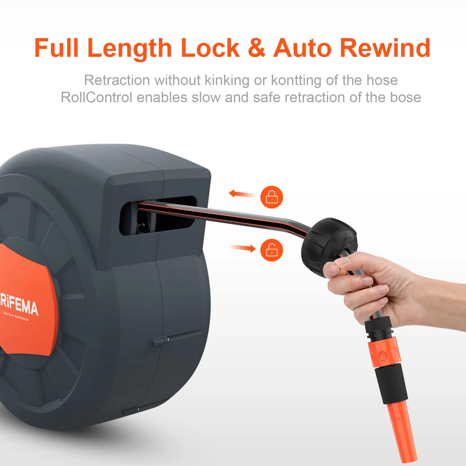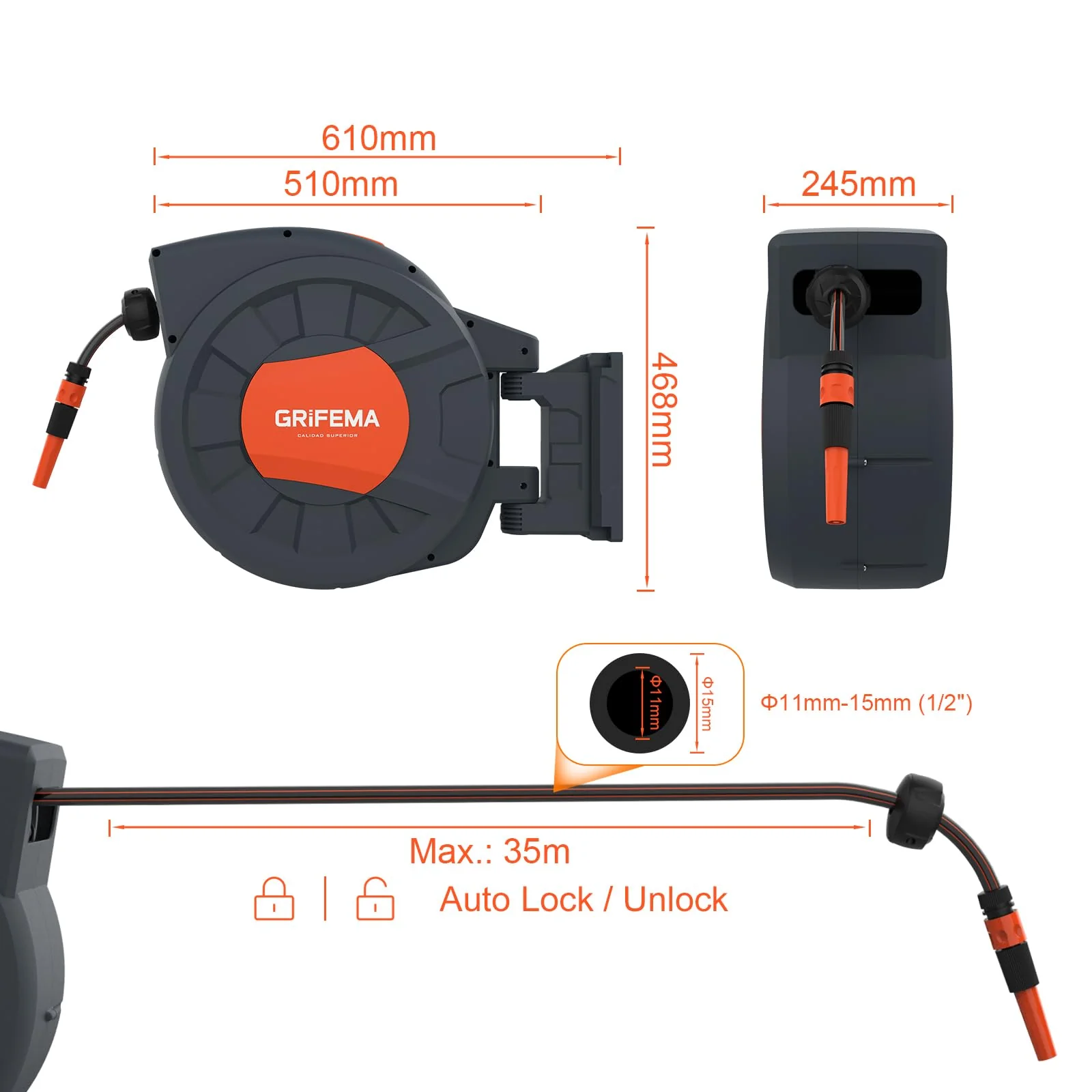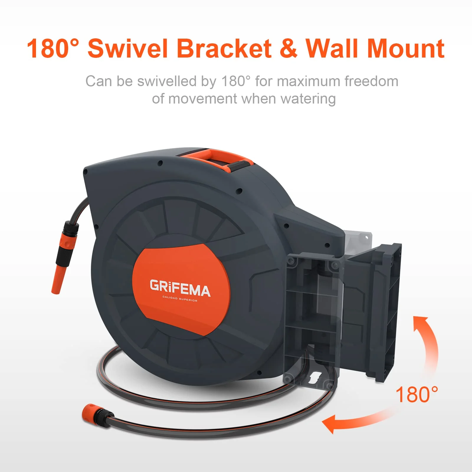 GRIFEMA G301-35, Avvolgitubo da Parete, Cassetta Avvolgitubo con Tubo da 35m, Avvolgitubo da Parete Orientabile a 180°, Riavvolgimento Automatico con Ugello Regolabile