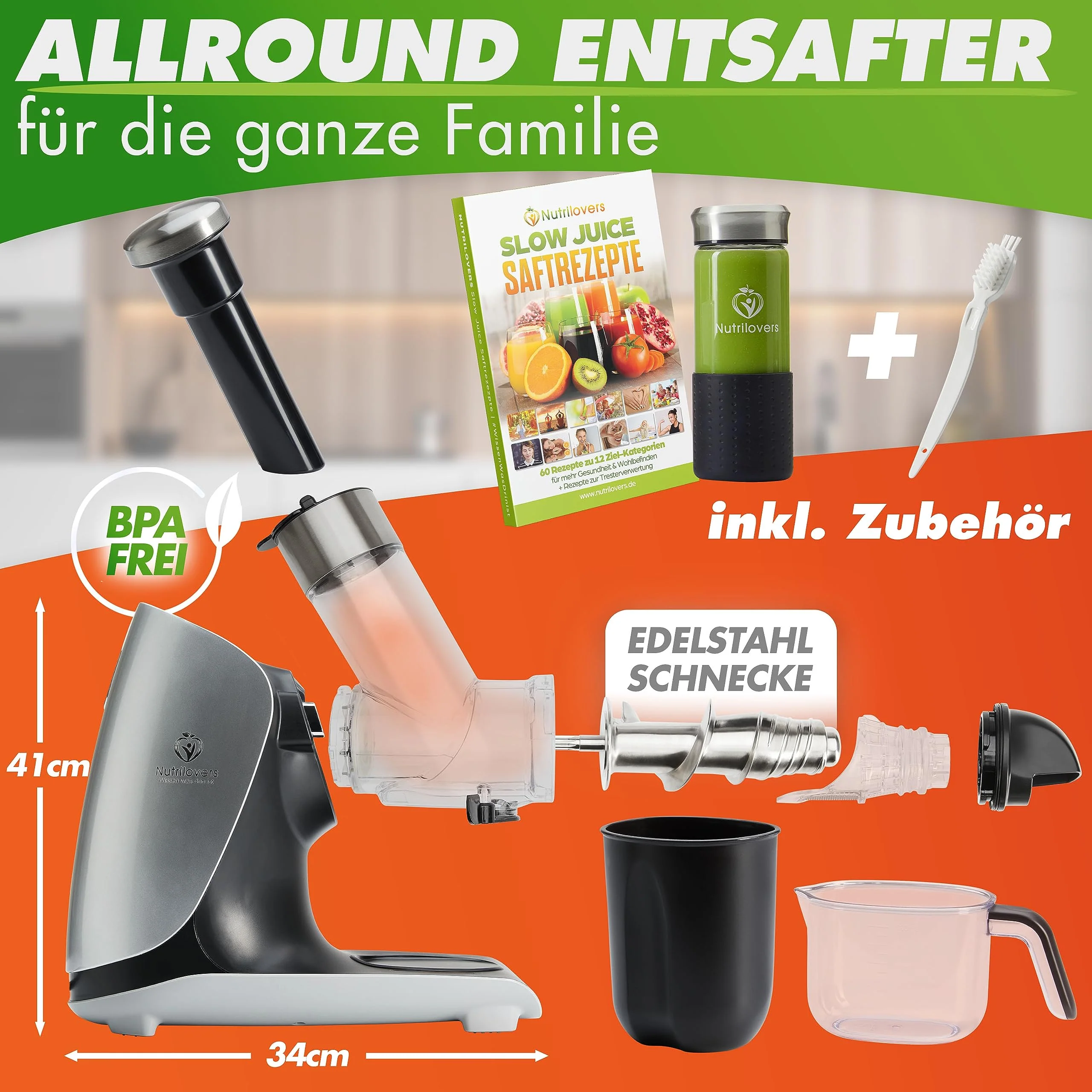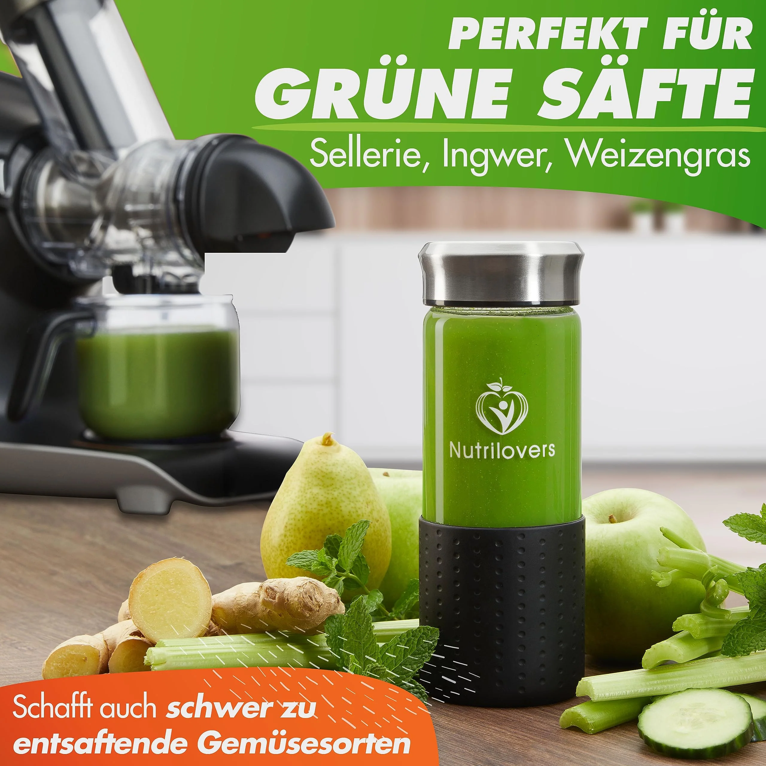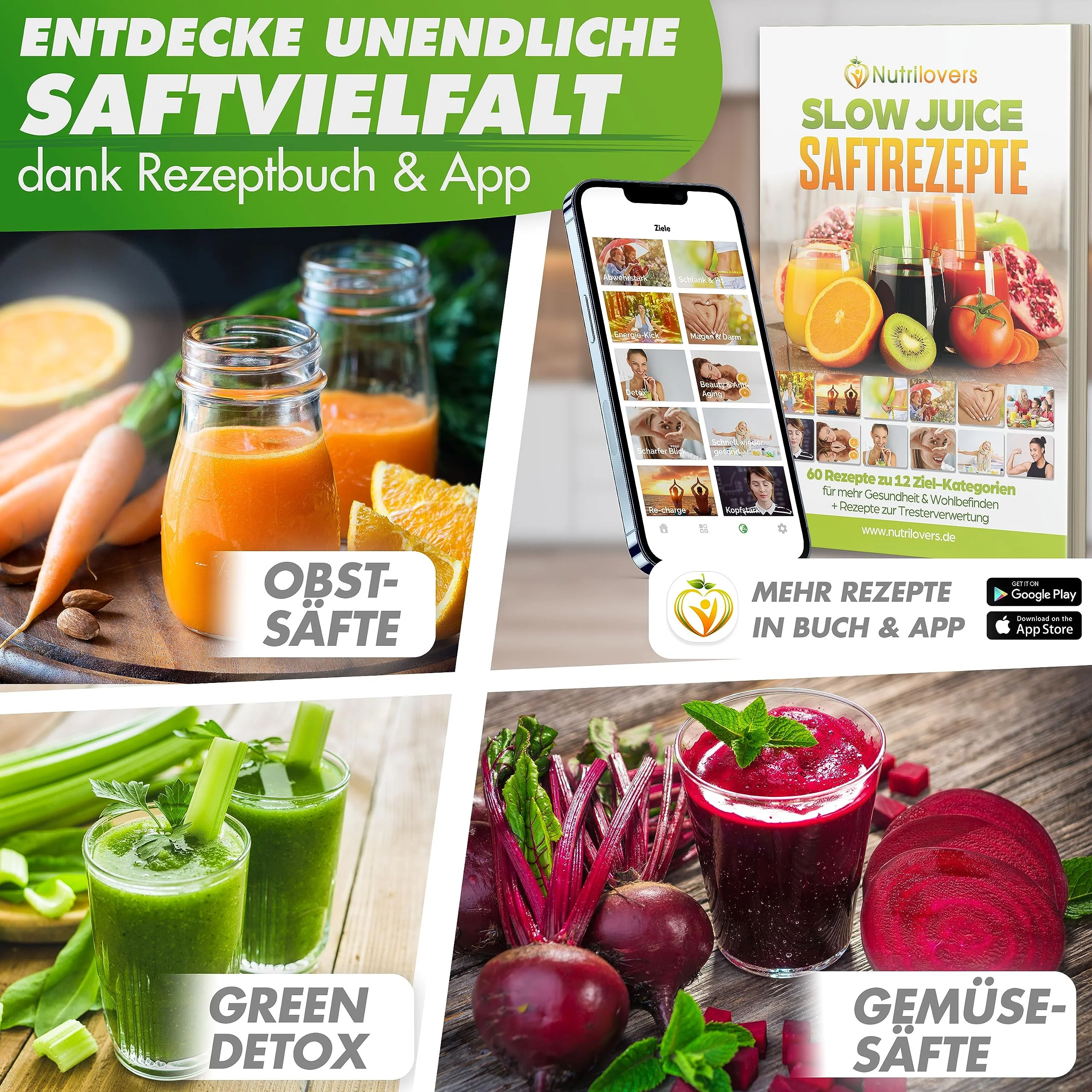 GREEN-PRESS Slow Juicer in acciaio inox 304, coclea in acciaio inox, senza BPA | MARCHIO TEDESCO | Spremiagrumi elettrico tuttofare per frutta intera, sedano, verdura e frutta | Campione di test 2025