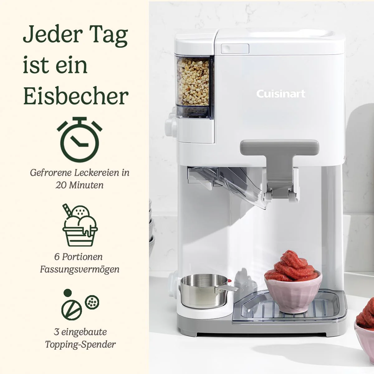 Cuisinart Gelatiera | Soft ice, Gelato, Sorbetto, gelato senza latte, yogurt gelato | Dispenser per topping | Facile da usare e pulire | Capacità 1,42 litri per 6 porzioni | Pronta in 20 minuti | Modello ICE48U