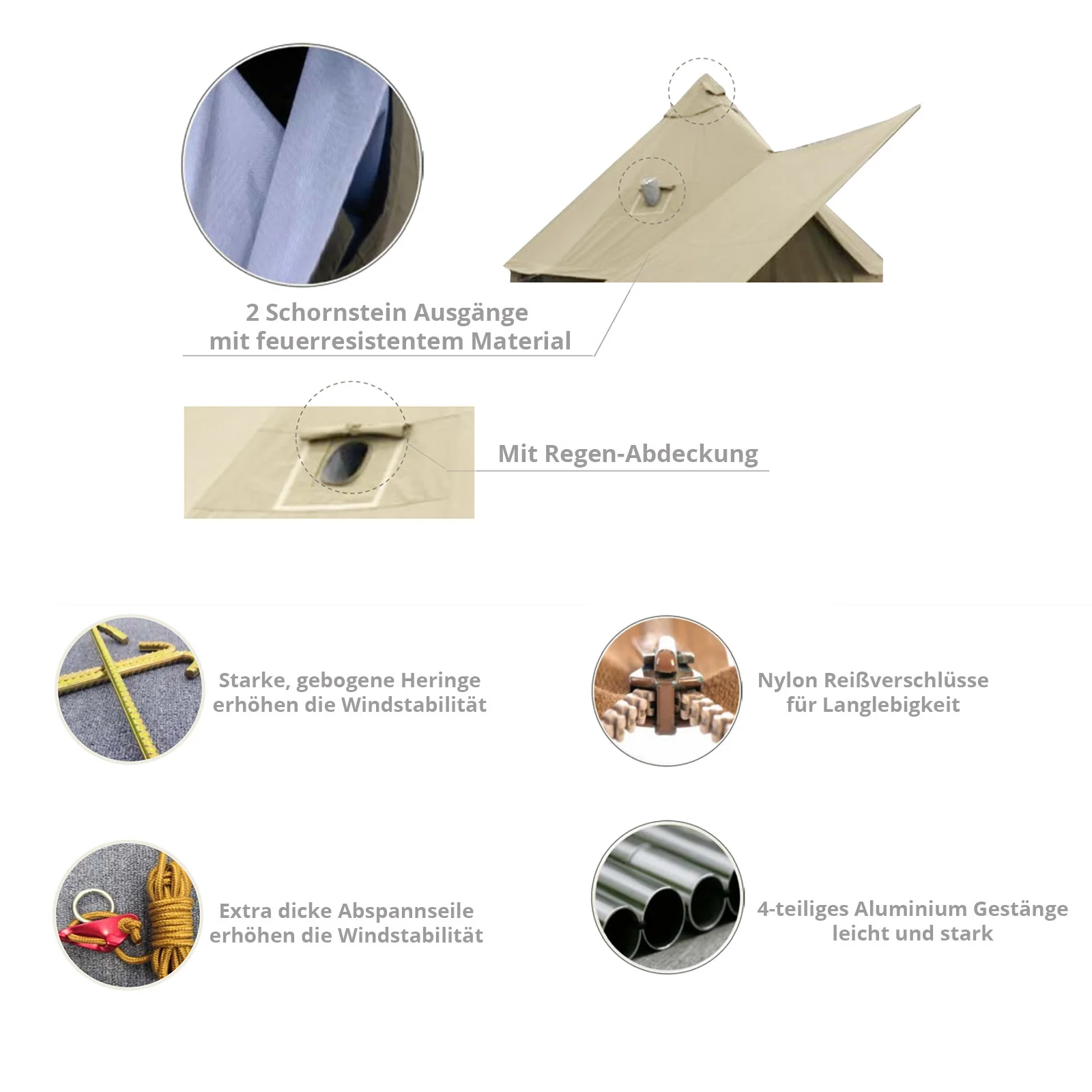 2025 KingCamp Torino 2 – Tenda spaziosa per 1-2 persone con struttura a palo singolo, uscita per camino, adatta all’inverno, idrorepellente e facilmente riponibile