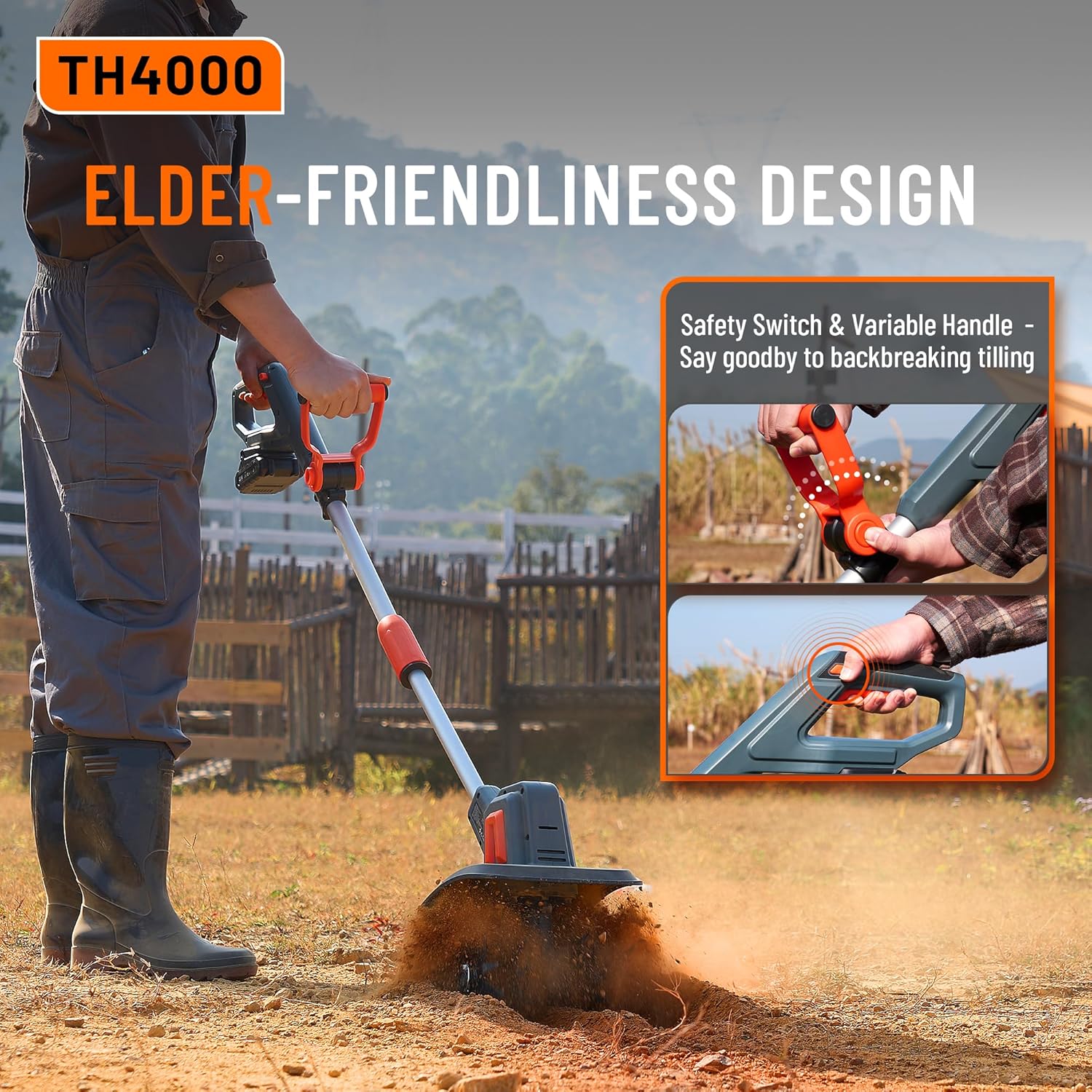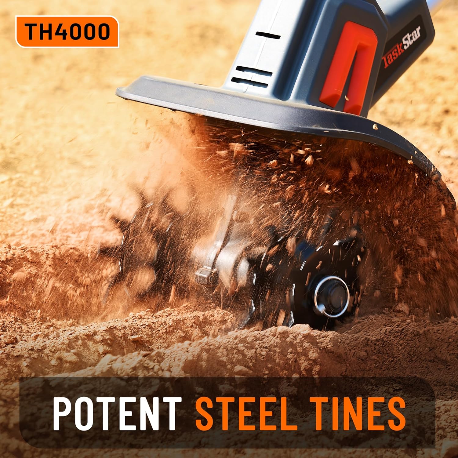 Motocicletta elettrica senza fili 360 RPM Motociclettore elettrico TaskStar TH4000 Motobineuse Batteria totale 2,0 Ah x2, 48 Lame in acciaio rinforzato per lavori di terra fluidi, Manutenzione